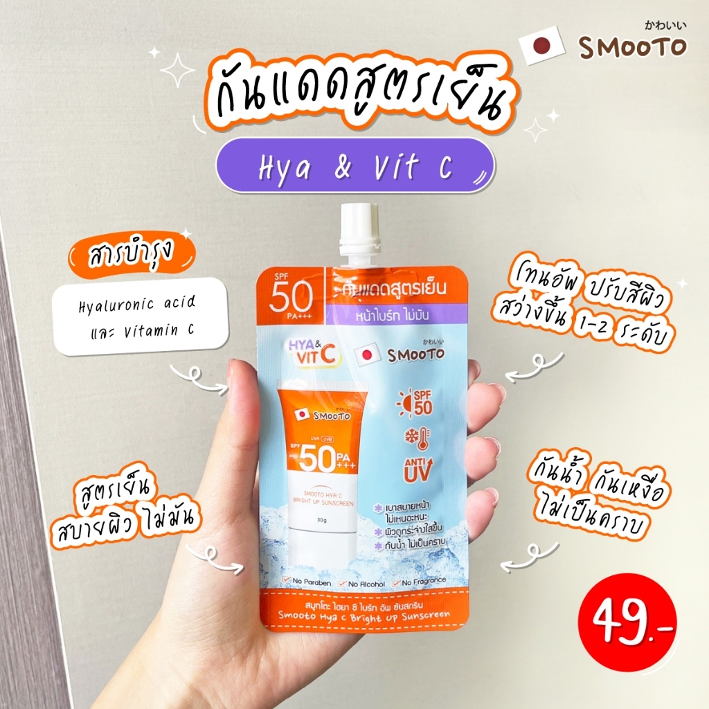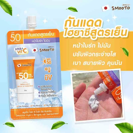 (1ซอง)ครีมซองกันแดด SMOOTO HYA & VIT C 30 กรัม Smooto Hya C Bright Up Sunscreen 30g.