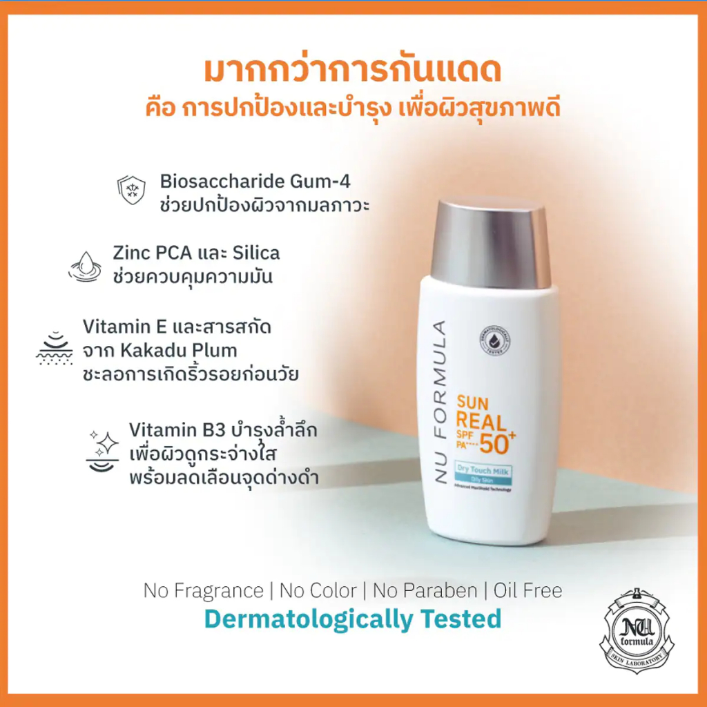 นู ฟอร์มูล่า ซัน เรียล เอสพีเอฟ 50+ พีเอ++++ ดราย ทัช มิลค์ 40/Nu Formula Sun Real SPF50+ PA++++ Dry Touch Milk 40 G.