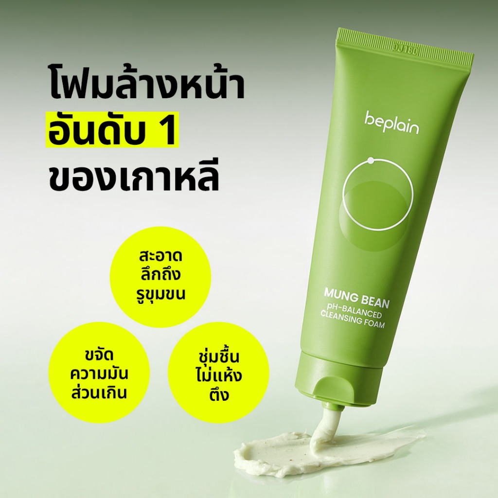 Beplain Mung Bean โฟมล้างหน้าถั่วเขียว 160ml | ผลัดเซลล์ผิวอย่างอ่อนโยน สะอาดถึงรูขุมขน | MUNG BEAN pH-BALANCED CLEANSING FOAM