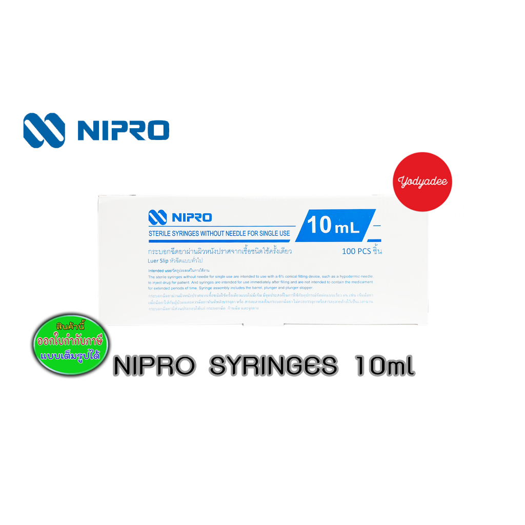 Nipro Syringe 10ml 20ml luer slip นิโปร ไซริงค์ 10มล. 20 มล. หัวฉีดแบบทั่วไป (หัวสลิบ เสียบ) กล่อง100ชิ้น