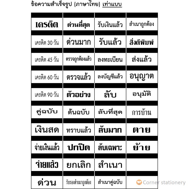 ตรายางสำเร็จ (ไม่รับทำ) ตรายางสำเนาถูกต้อง จ่ายแล้ว ตรวจแล้ว การบ้าน ยกเลิก เครดิต รับแล้ว ด่วน ลับ