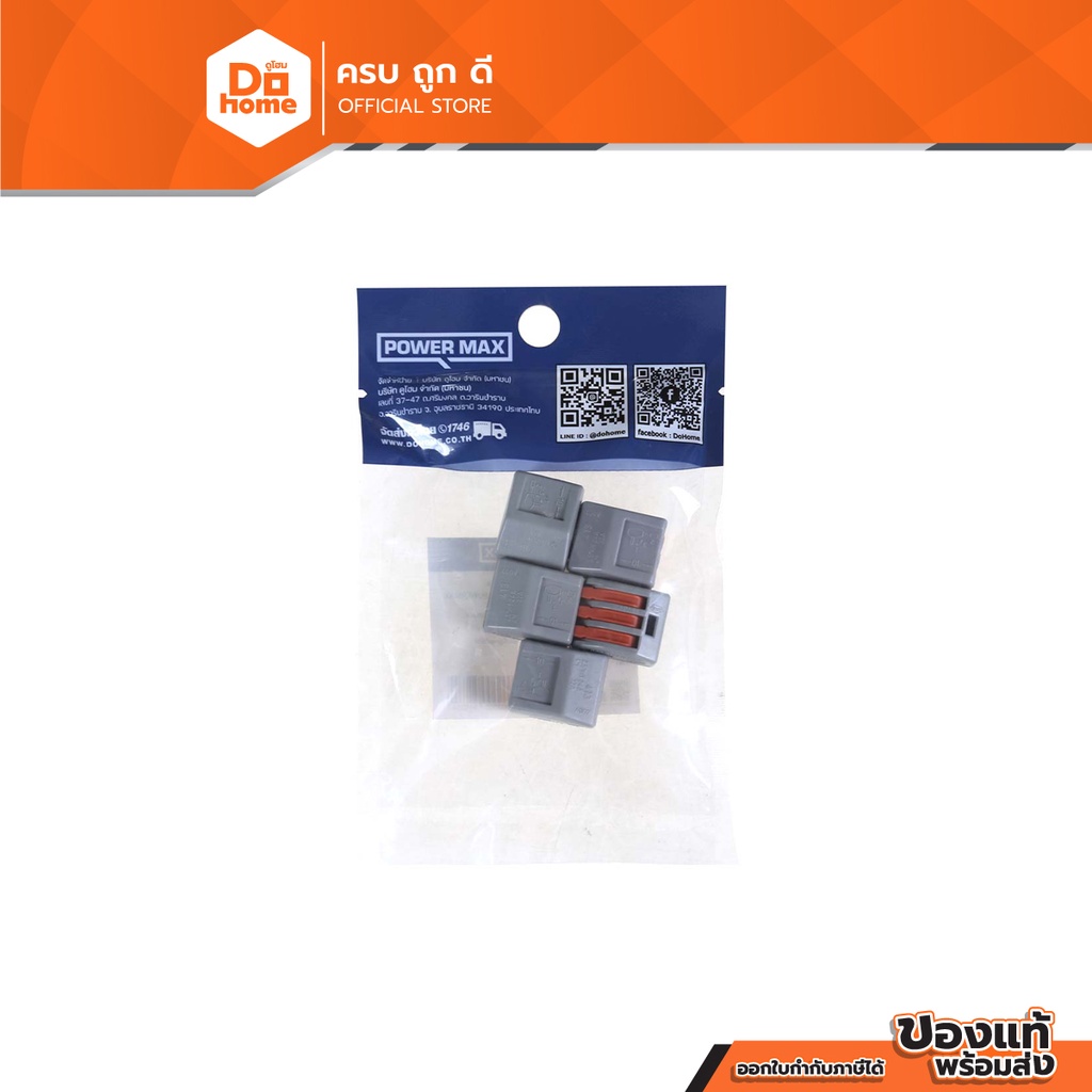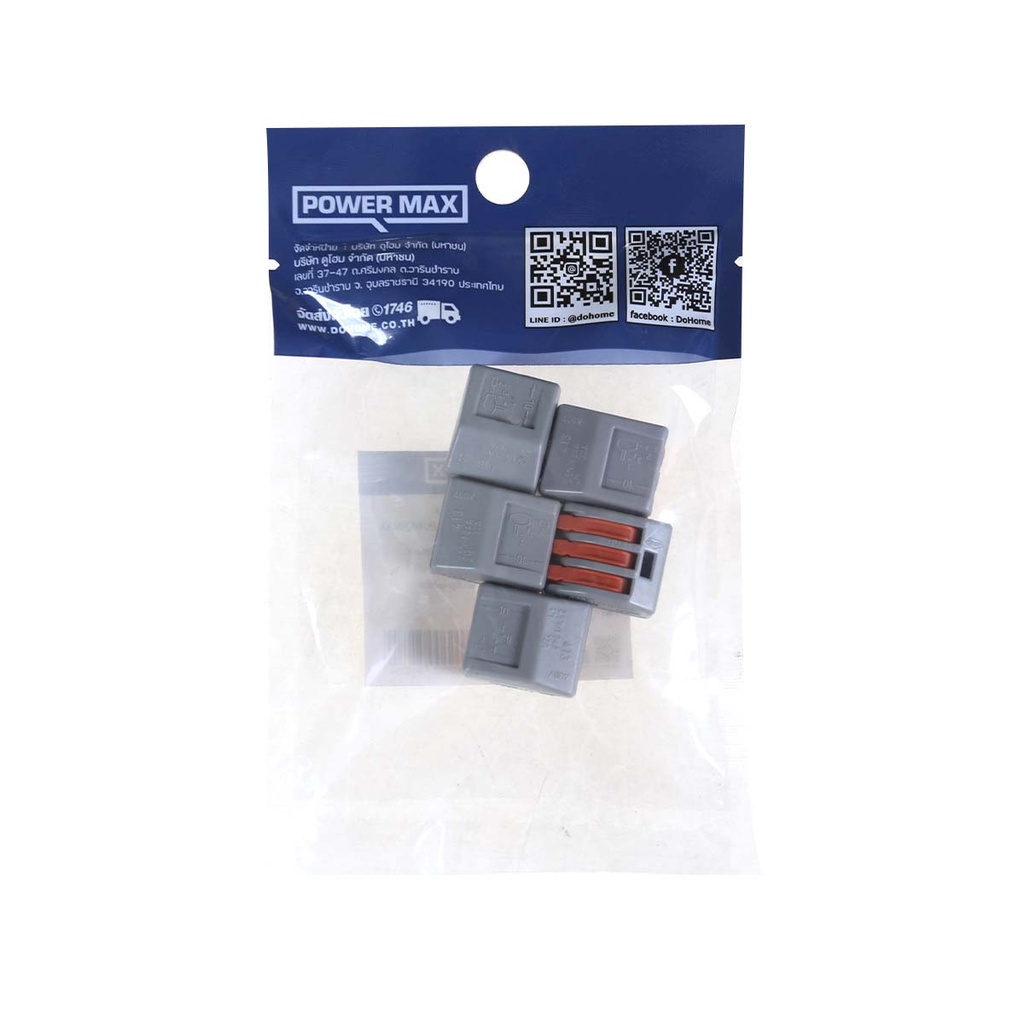 Power MaxQ ขั้วต่อสายไฟ 3 ช่อง 250V สีเทา (แพ็ค 5) |PAC|