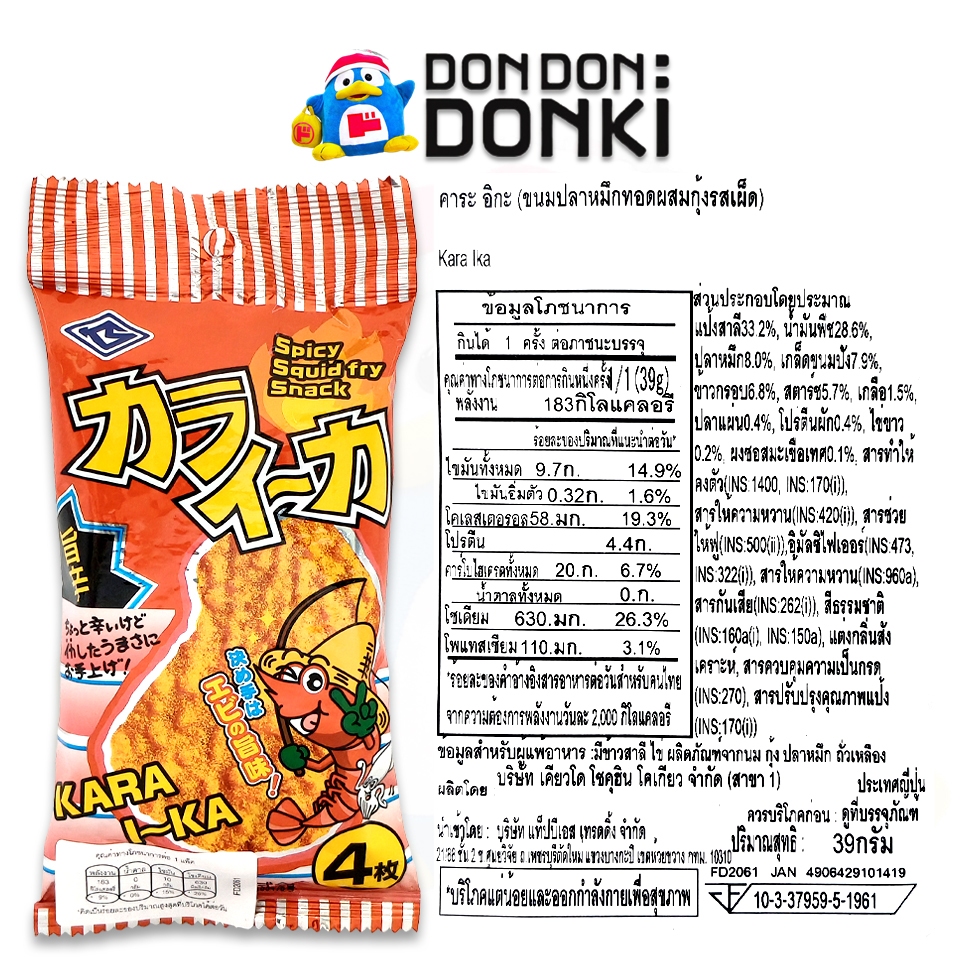 ขนมปลาหมึกทอด ผสมกุ้งรสเผ็ด และ รสมายองเนส Kara Ika Mayo Ika