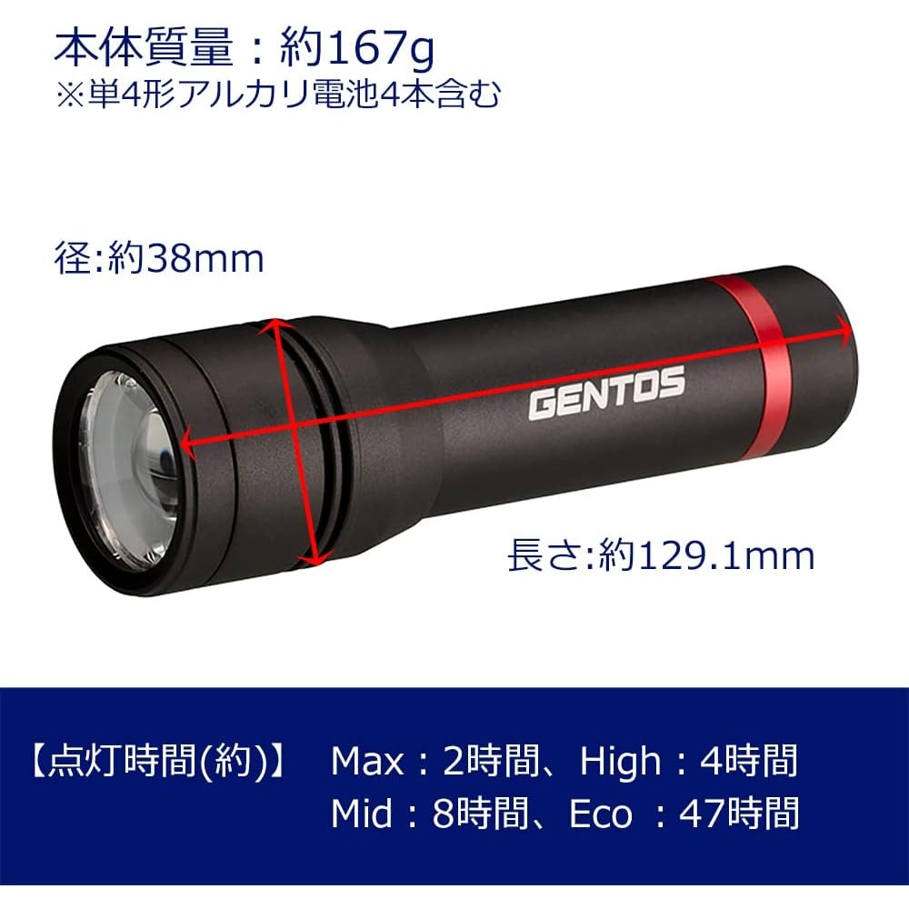 GENTOS ไฟฉาย LED แบบใช้แบตเตอรี่ อุปกรณ์กลางแจ้งญี่ปุ่น