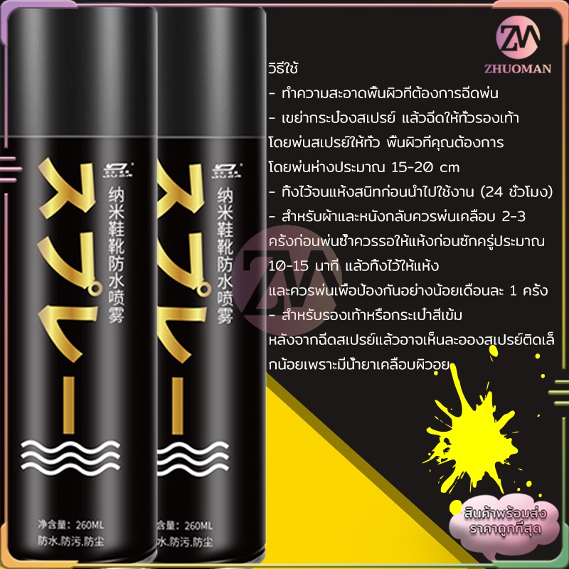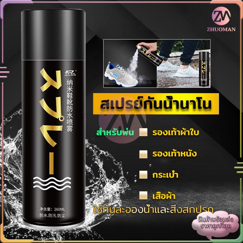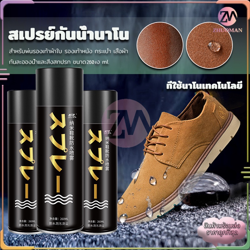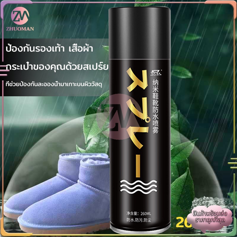 สเปรย์กันน้ํา รองเท้า260MLสเปรย์นาโน ช้กันละอองน้ำและสิ่งสกปรก สามารถใช้กับผ้าหนังกลับ, ผ้าเต้นท์, กระดาษขึ้นรูป ได้คะ