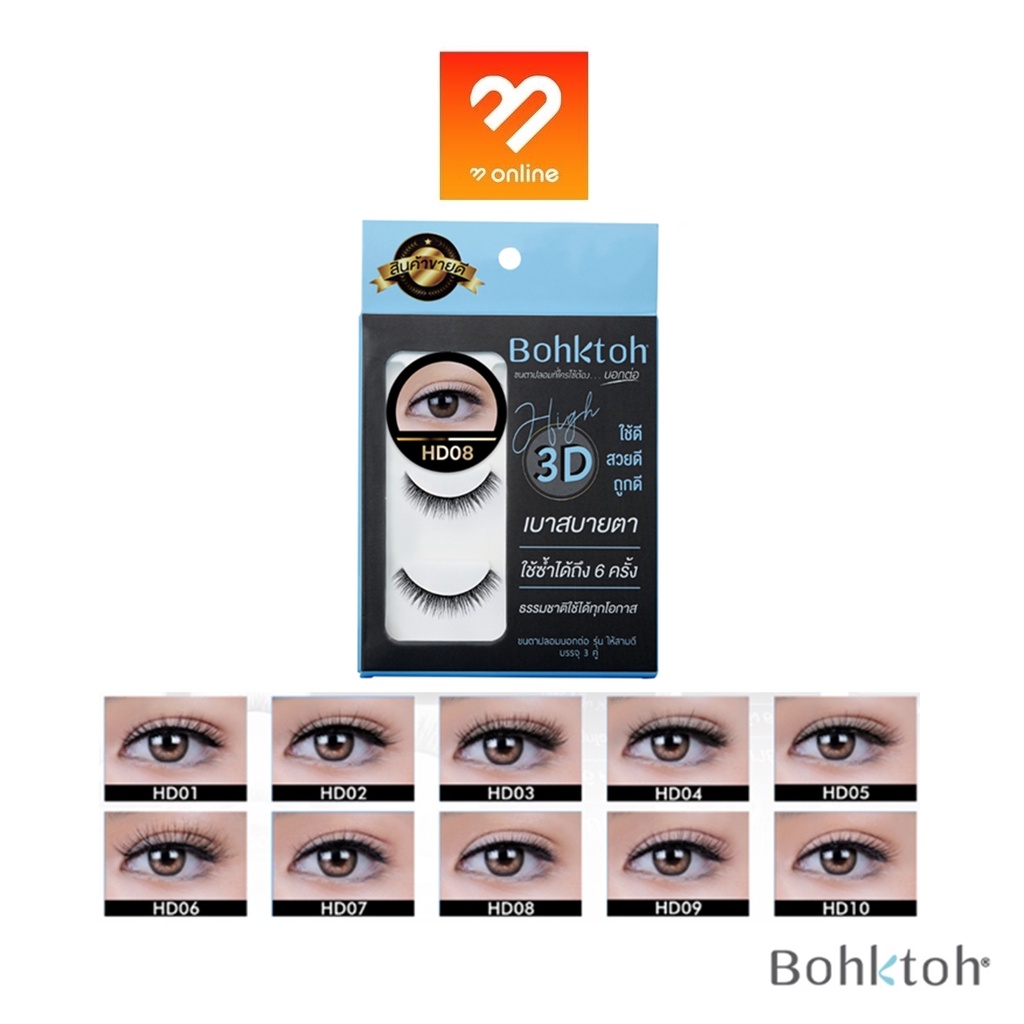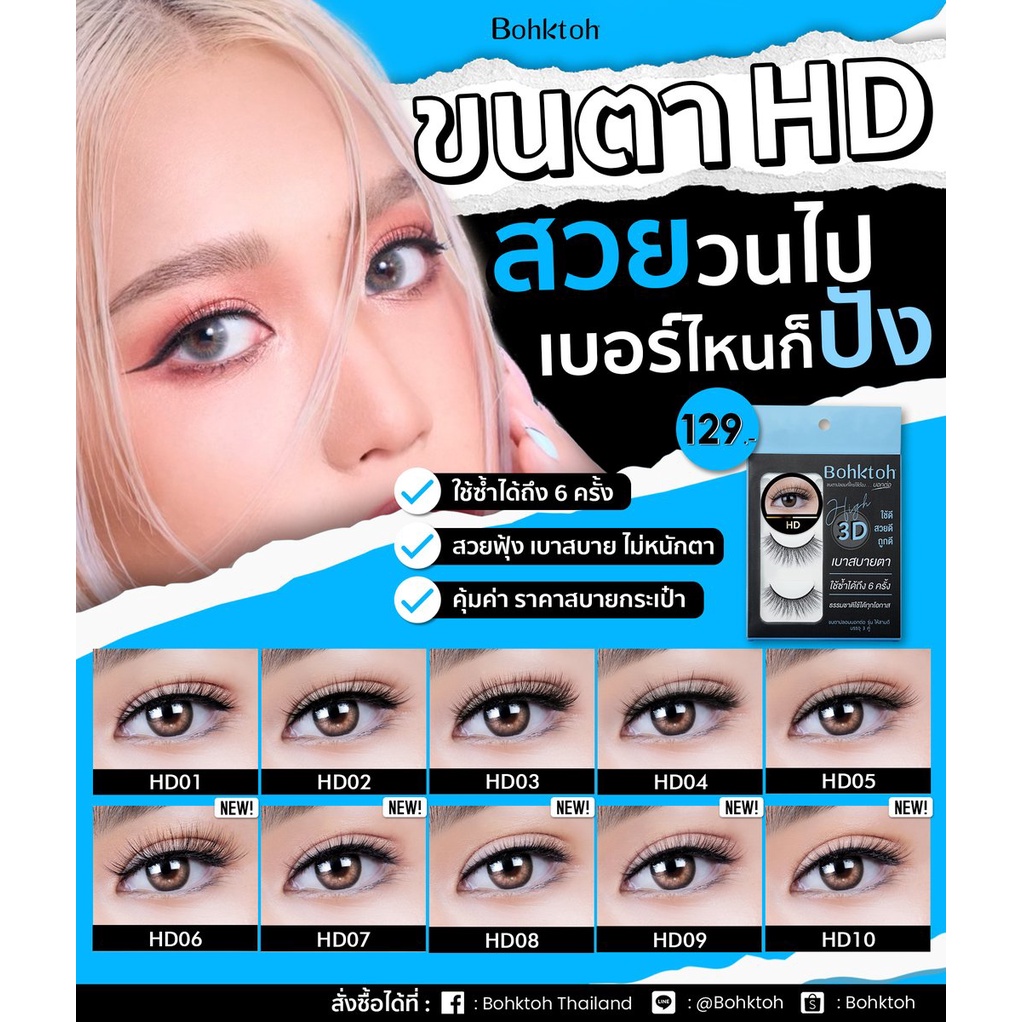 Boombeautyonline | Bohktoh High 3D บอกต่อ ขนตาปลอม บรรจุ 3 คู่ เบาสบายตา ใช้ซ้ำได้ถึง 6 ครั้ง *ครบเบอร์ 01- 10* ของแท้