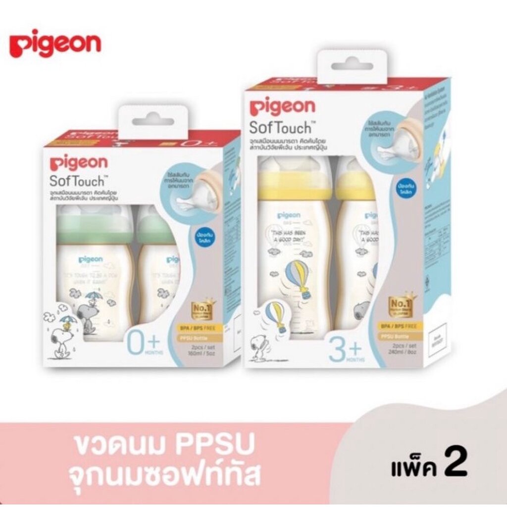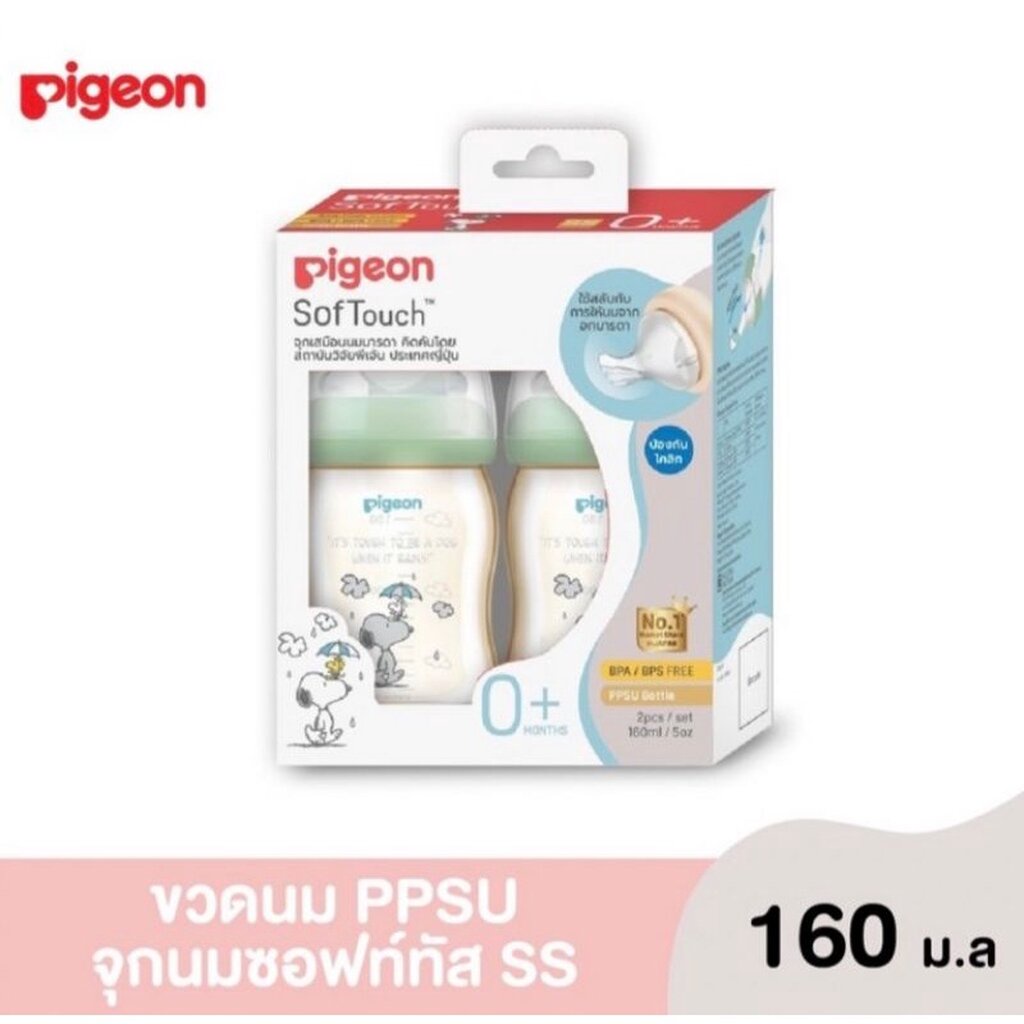 Pigeon พีเจ้น ขวดนม PPSU สนูปี้ ขนาด160มล.จุกซอฟทัชไซส์SS และ ขนาด240มล.จุกไซส์M ขวดคอกว้าง แพ็ค2ขวด