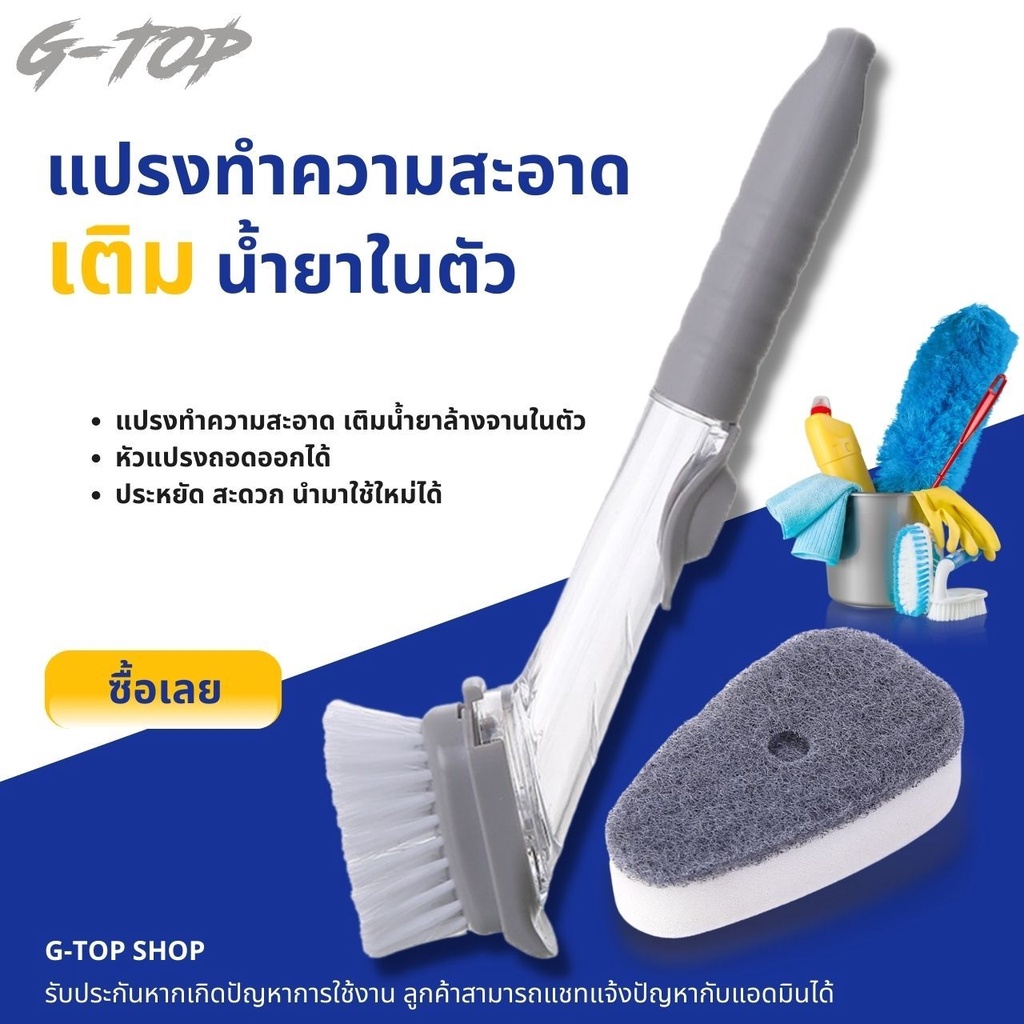 แปรงทำความสะอาด 1ชุดมีหัวเปลี่ยน แปรง1 ฟองน้ำ1 สามารถเปลี่ยนได้ พร้อมช่องเติมน้ำยา เพิ่มความสะดวก