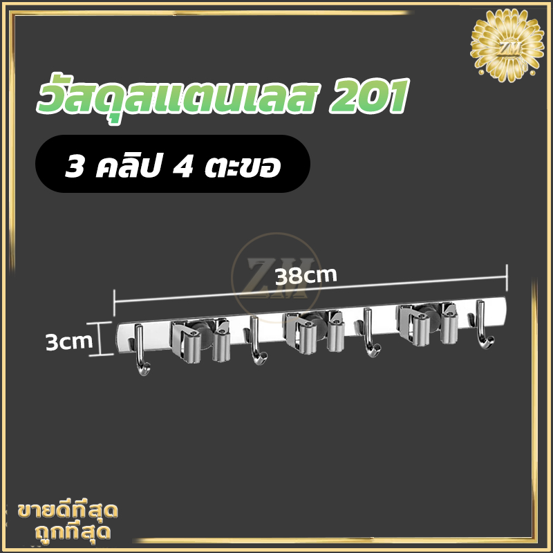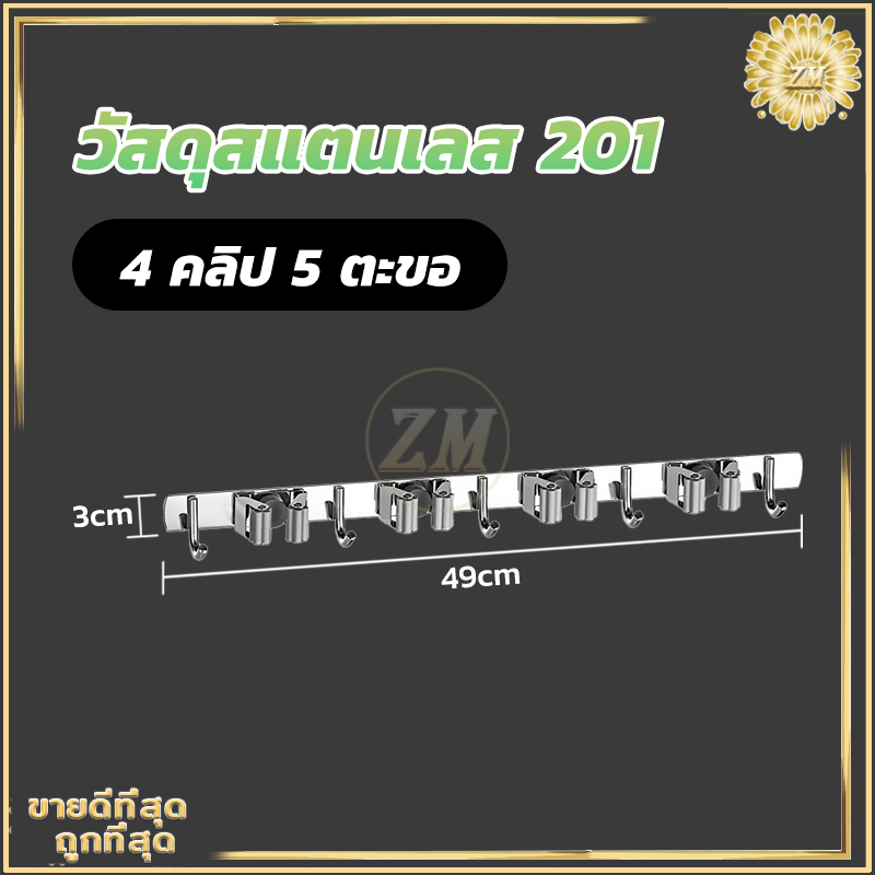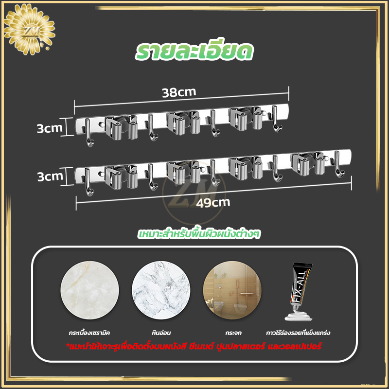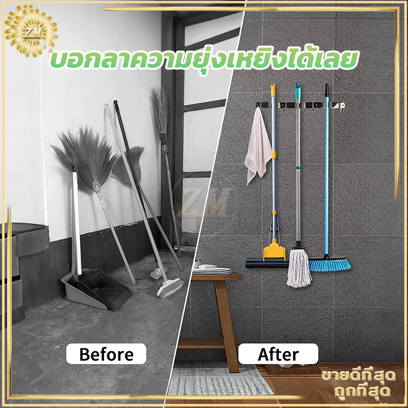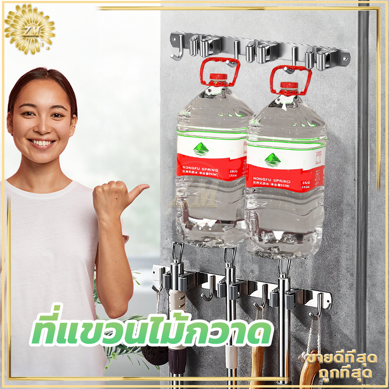 ที่แขวนไม้กวาด ตะขอราง/เก็บไม้กวาด สเตนเลส 304 อเนกประสงค์ ไม้กวาด และตะขอไม้ถูพื้น ปรับได้อัตโนมัติ ไม้ถูพื้น