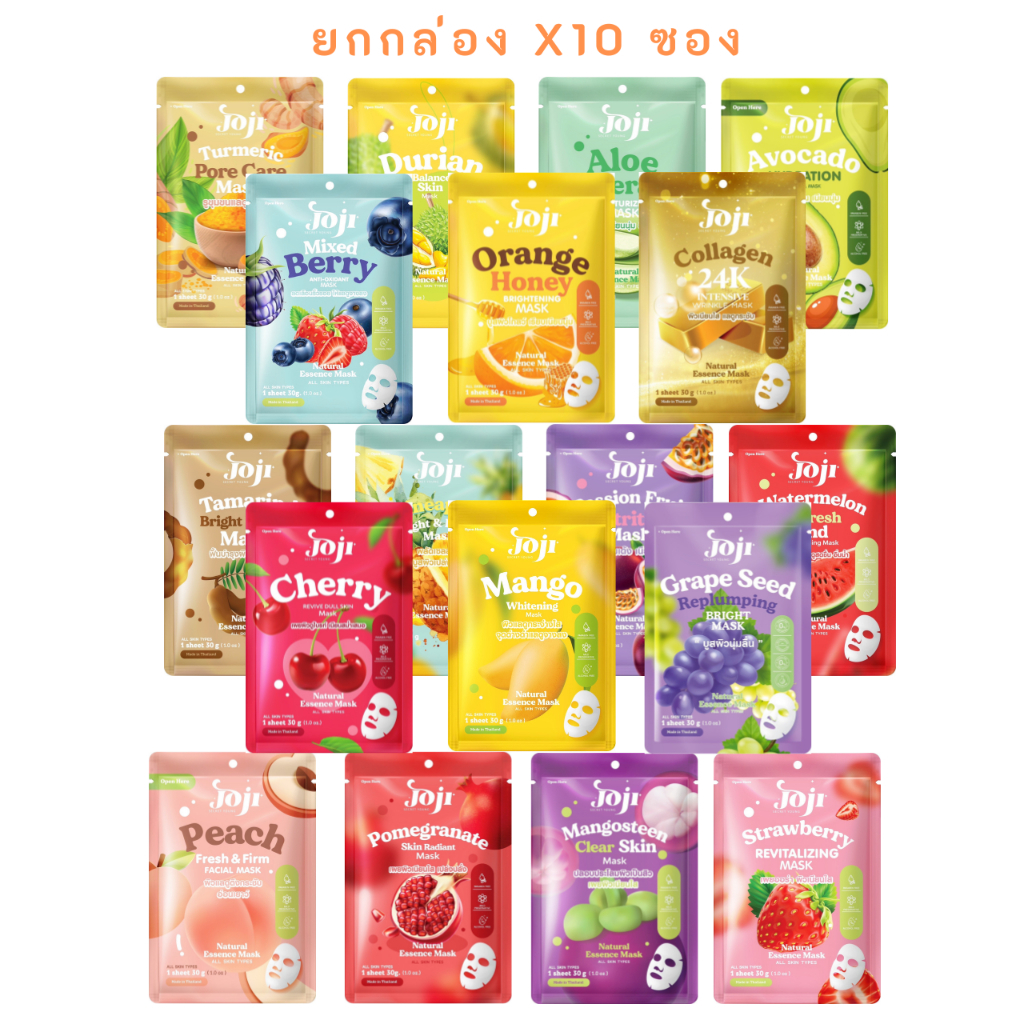 (ยกกล่อง 10 แผ่น * 30กรัม) มาสก์ชีท JOJI Secret Young Natural Essence Mask - 18 สูตรบำรุงผิวในหนึ่งเดียว
