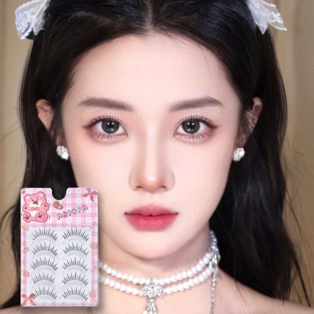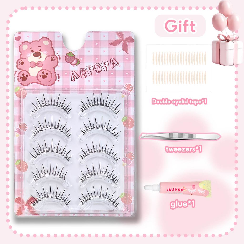 Abpopa ห้าคู่กลุ่มผู้หญิง A-type Fairy Hair ขนตาปลอม (ของขวัญฟรี : กาว+แหนบ+เทปตาสองชั้น) ดัดขึ้นและรากมีส่วนร่วม M06