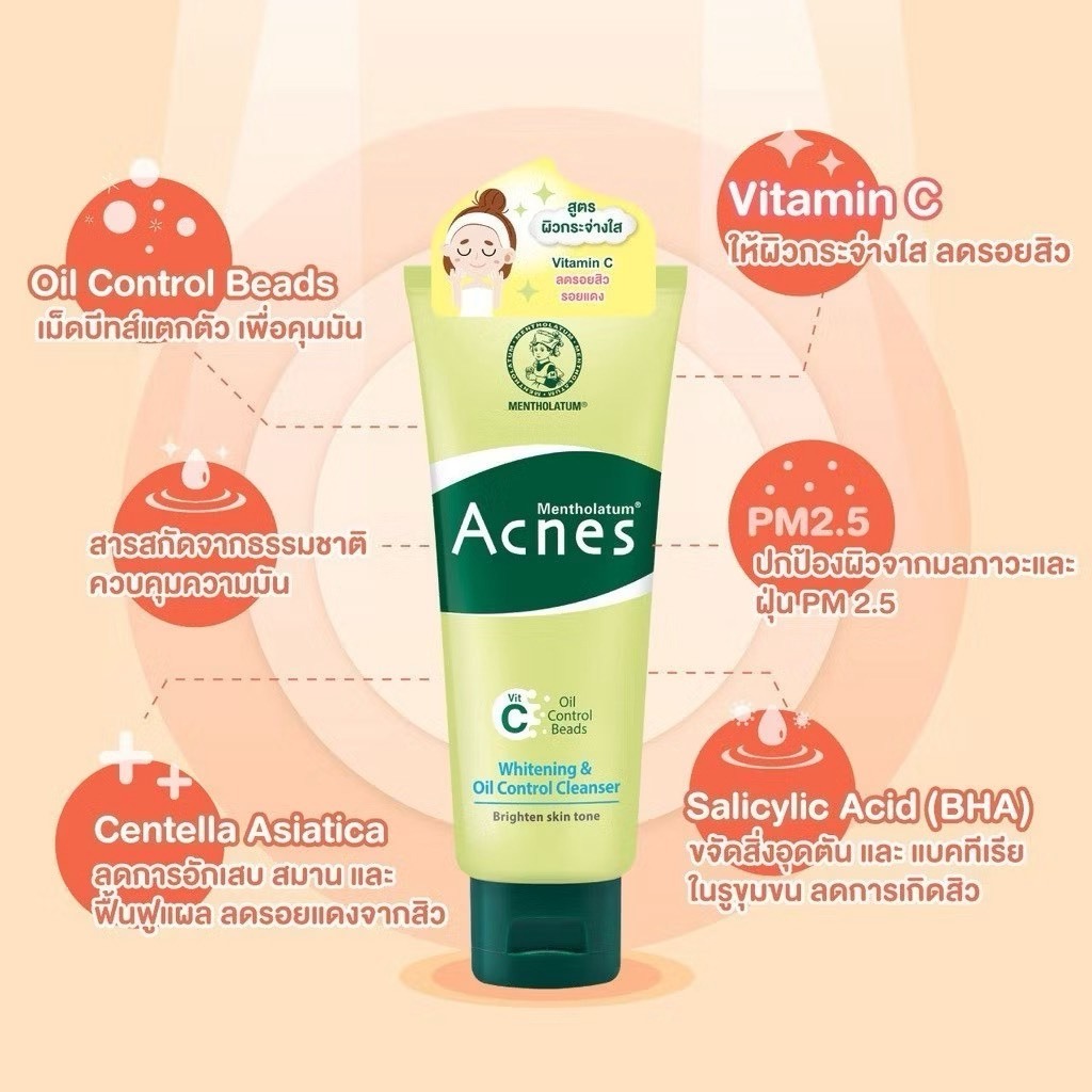 โฟมล้างหน้า เมนโทลาทั่ม แอคเน่ส์ สำหรับผิวเป็นสิว หน้ามัน Mentholatum Acnes 100 g.