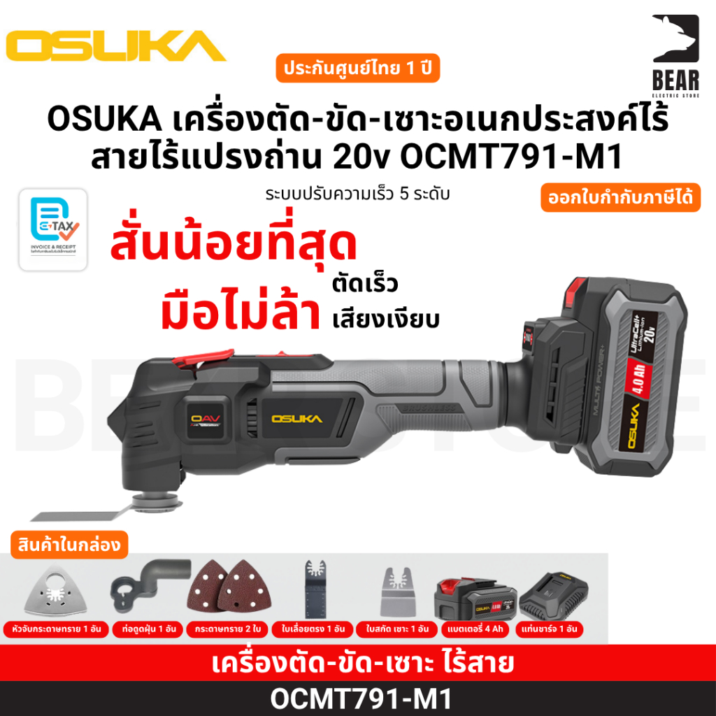 OSUKA เครื่องตัด-ขัด-เซาะอเนกประส งค์ไร้สายไร้แปรงถ่าน 20v OCMT791-M1 ประกันศูนย์ไทย 1 ปี