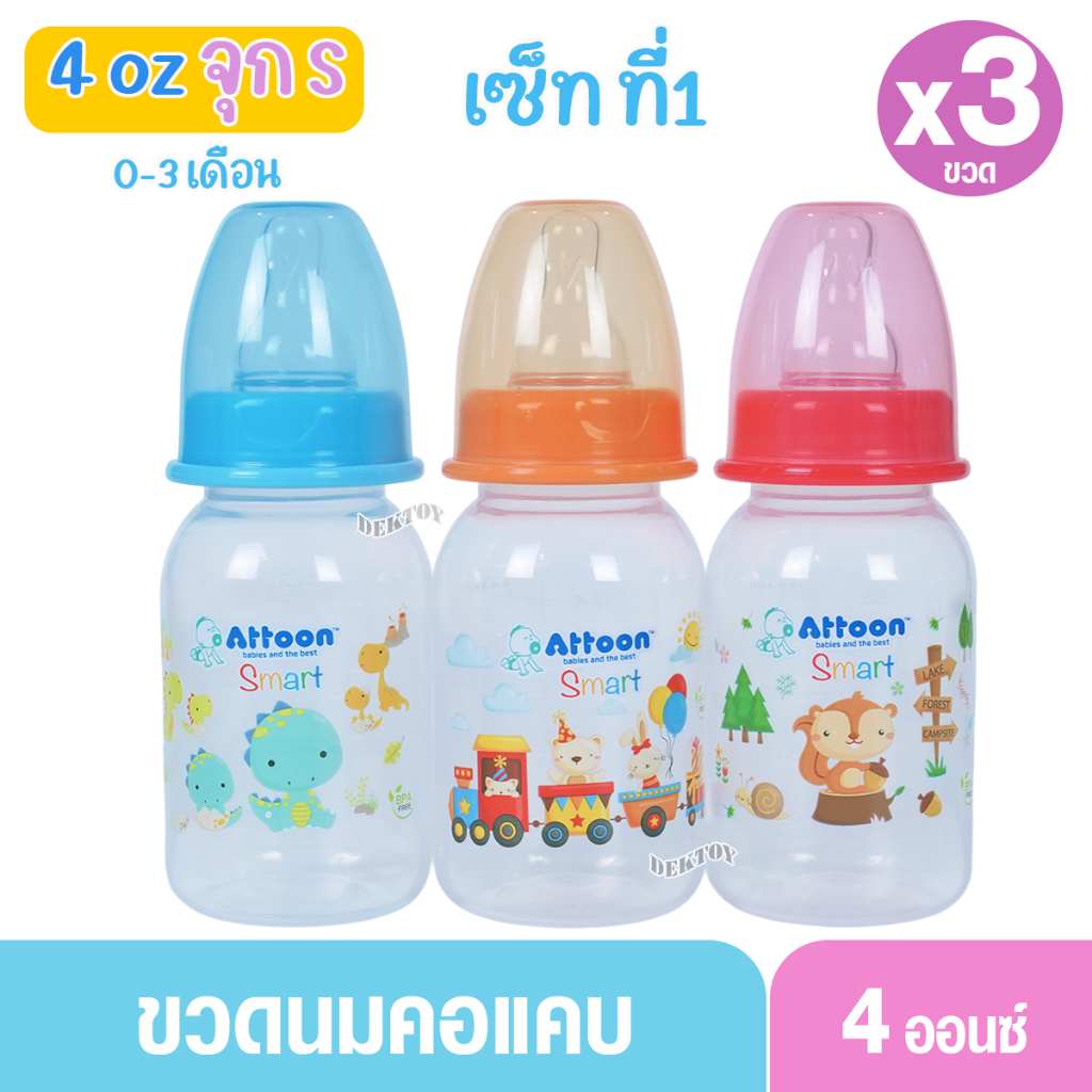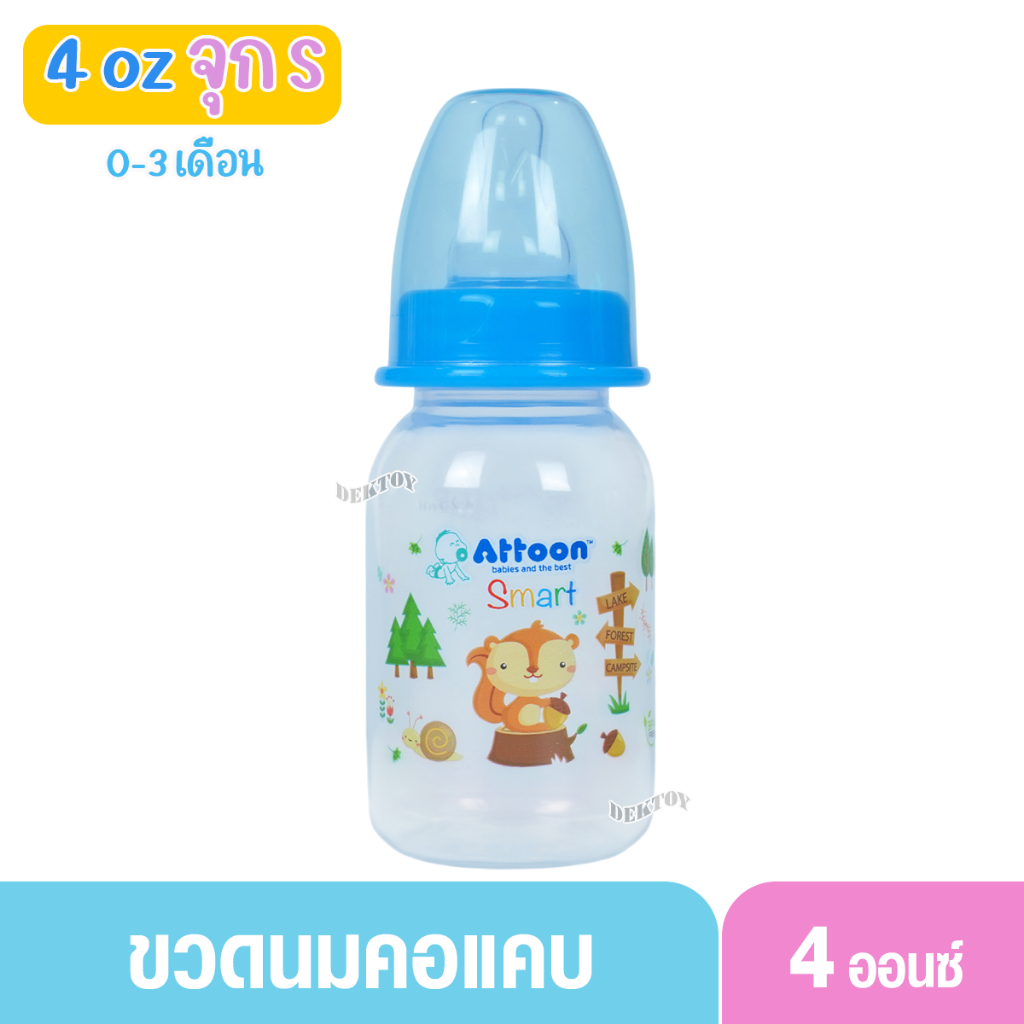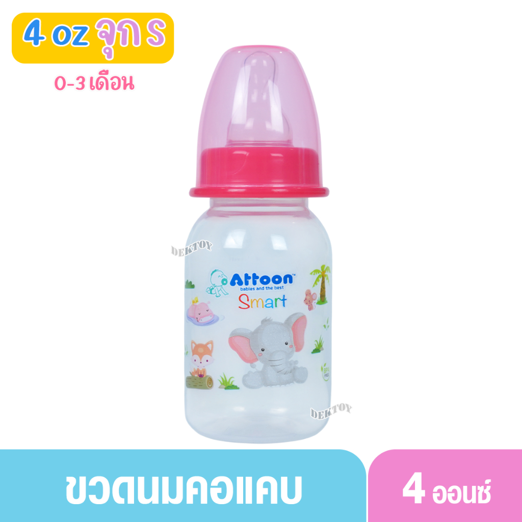 1 ขวด Attoon แอทตูน ขวดนมแอทตูน ทรงกลม คอแคบ smart 4และ8ออนซ์