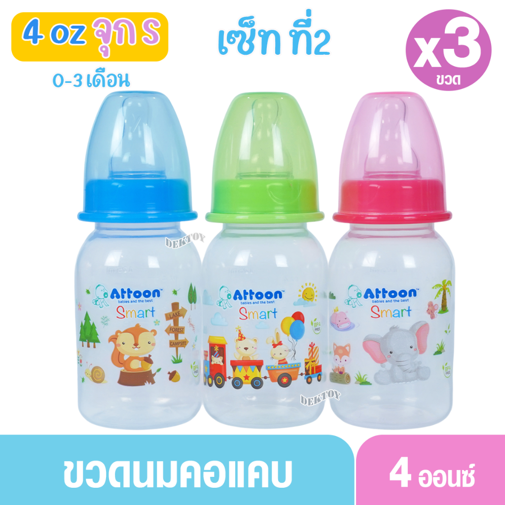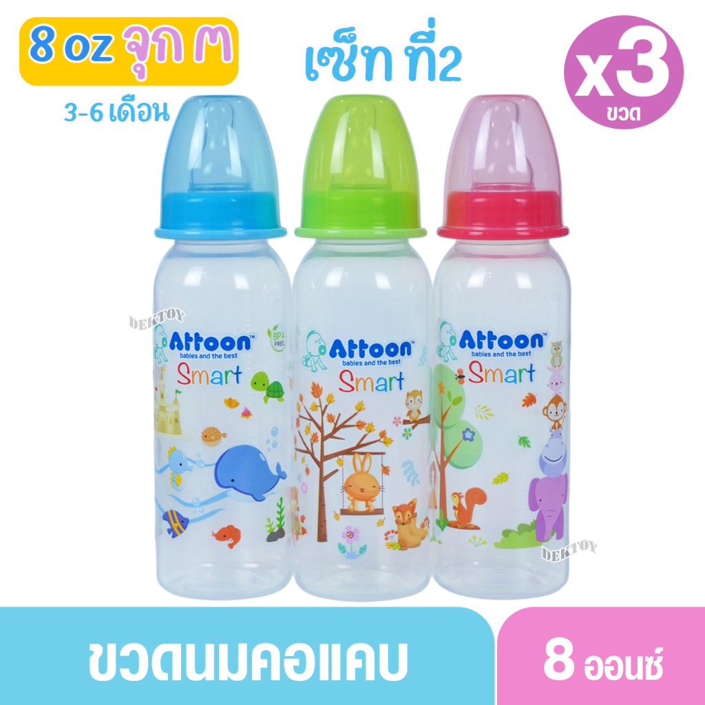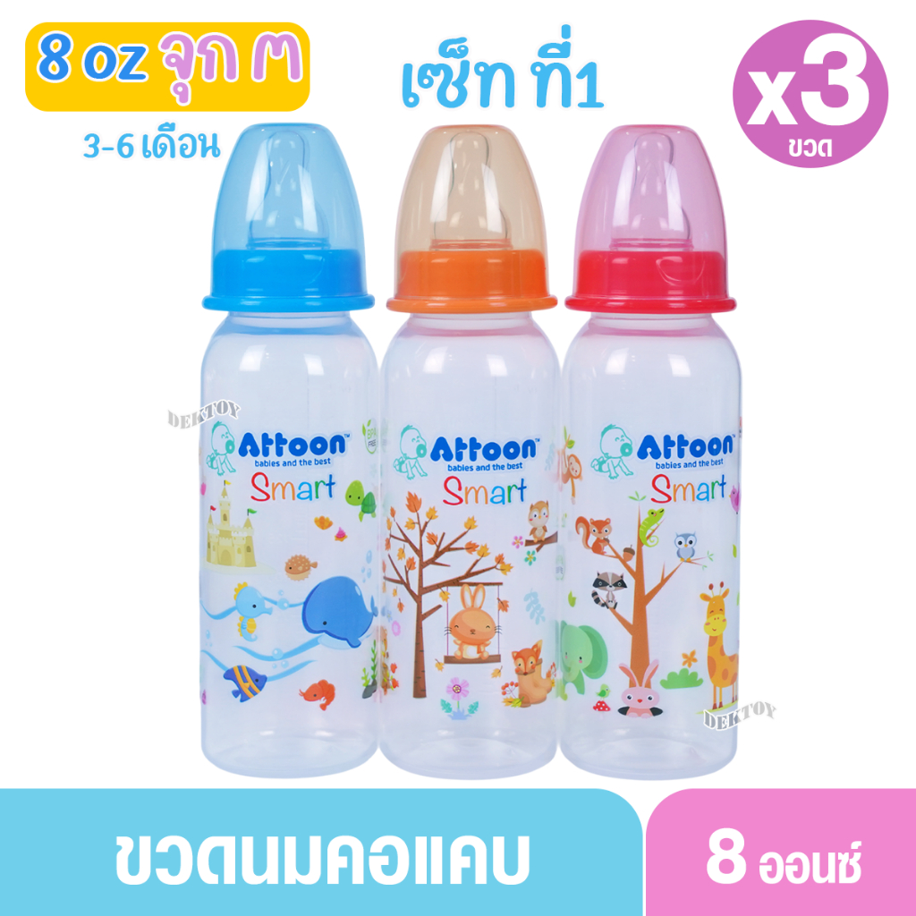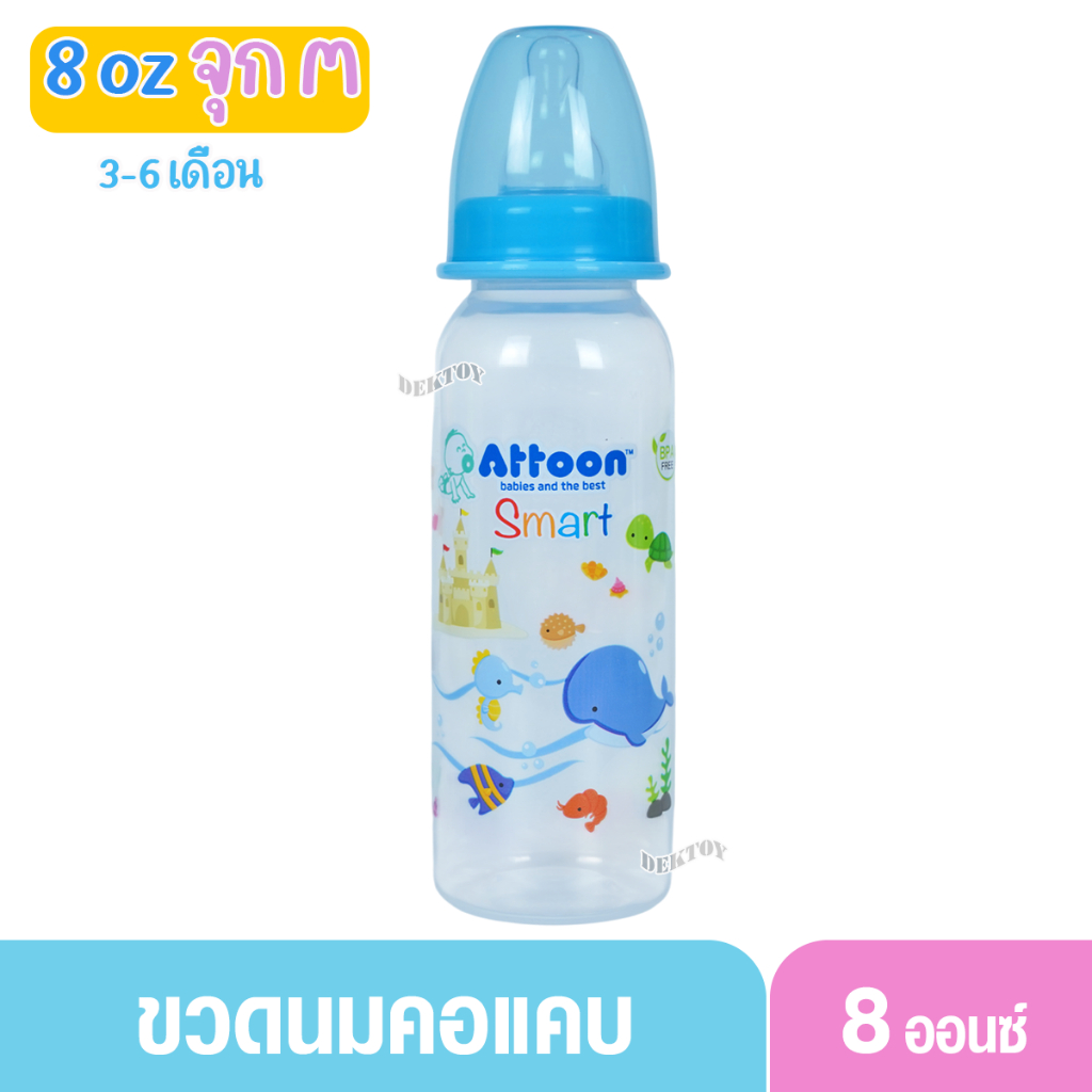 1 ขวด Attoon แอทตูน ขวดนมแอทตูน ทรงกลม คอแคบ smart 4และ8ออนซ์