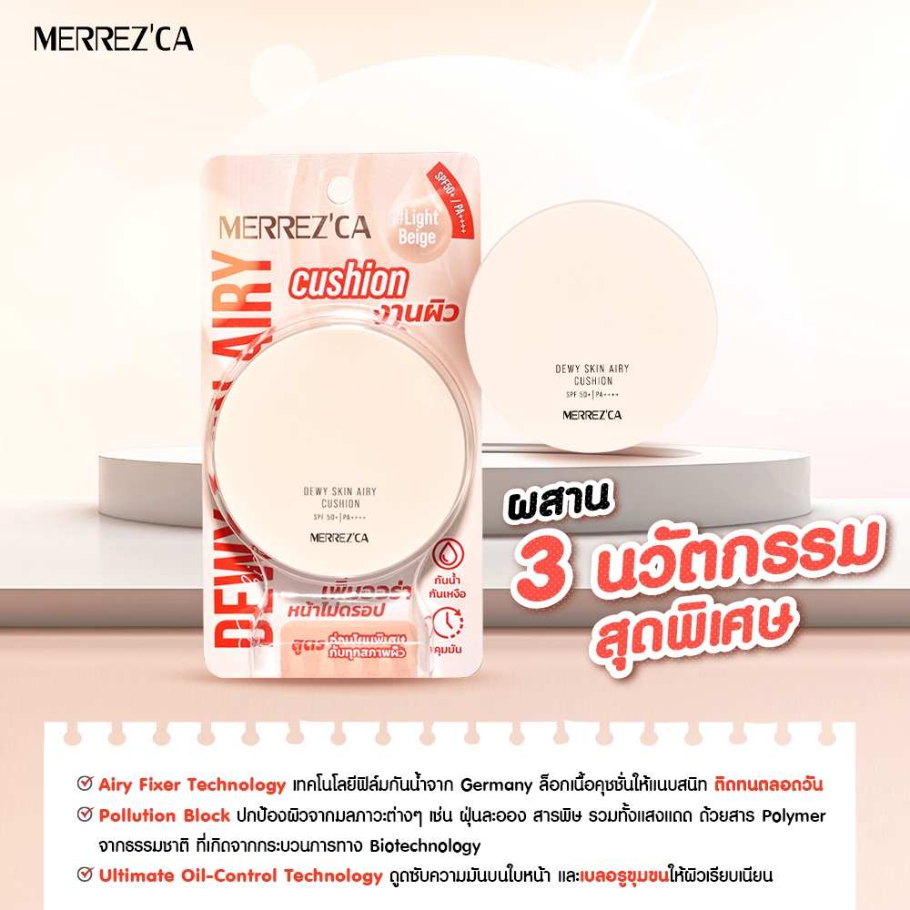 ถูก/แท้/มีไลฟ์ คุชชั่น คูชั่น Merrezca Dewy Skin Airy Cushion SPF50+ PA++++ คุชชั่นผิวกระจก ฉ่ำโกลว์ ปกปิด คุมมัน