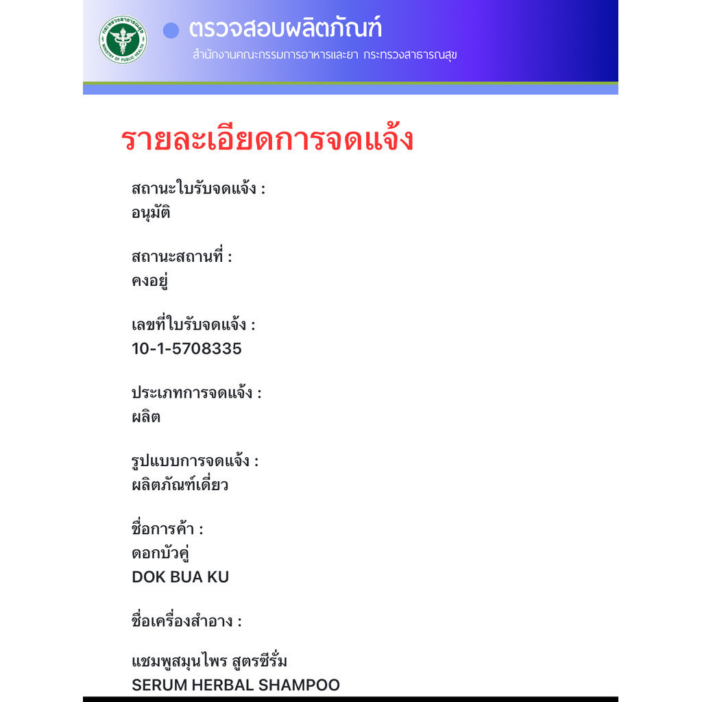 📍 (1ขวด) Dok Bua Ku Serum Herbal Shampoo 80 มล. ดอกบัวคู่ แชมพูสมุนไพร สูตรซีรั่ม