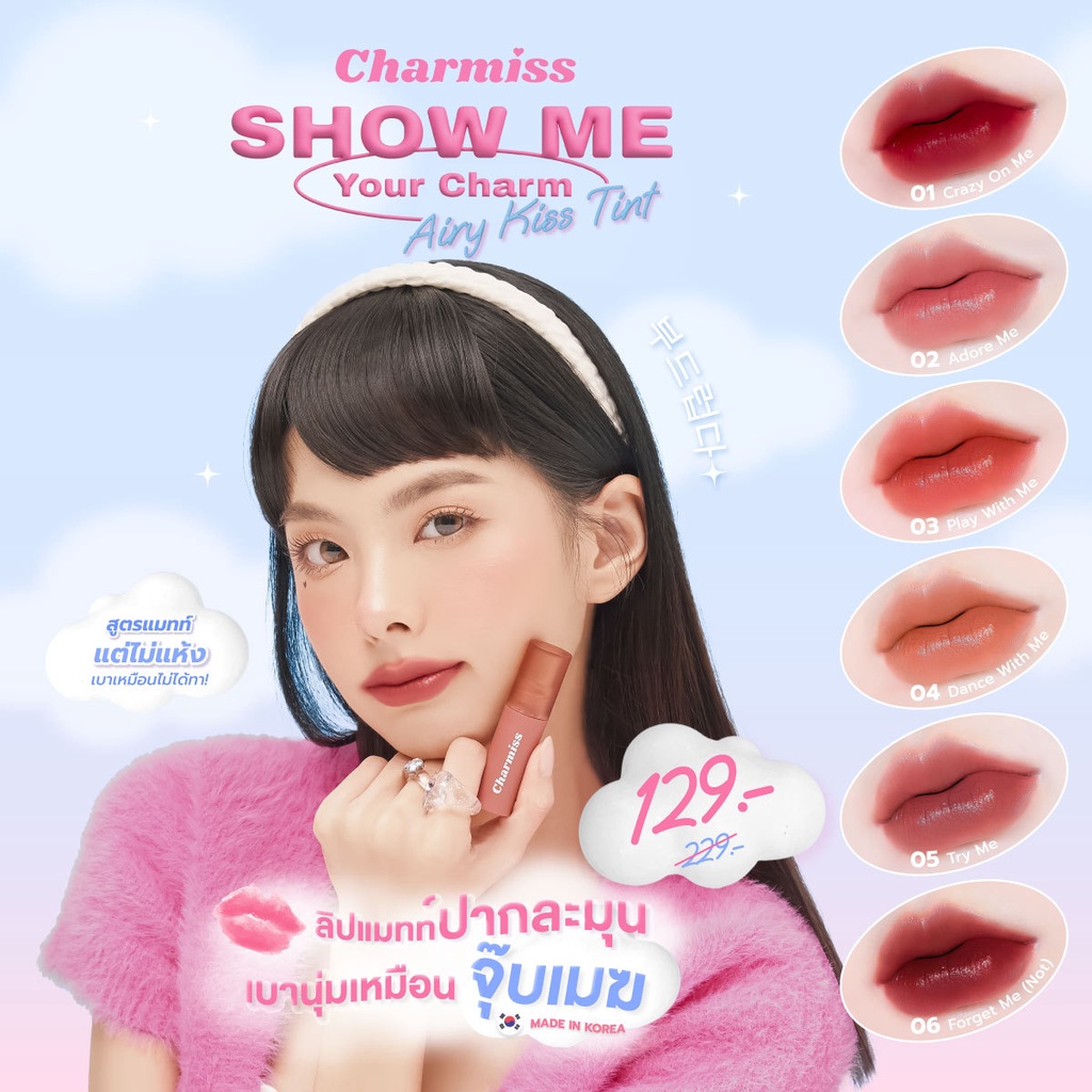 Charmiss Show Me Your Charm Airy Kiss Tint 2.5g. ลิปทินท์เนื้อมูสแมท ติดทน ช่วยปกปิดรอยคล้ำที่ปาก