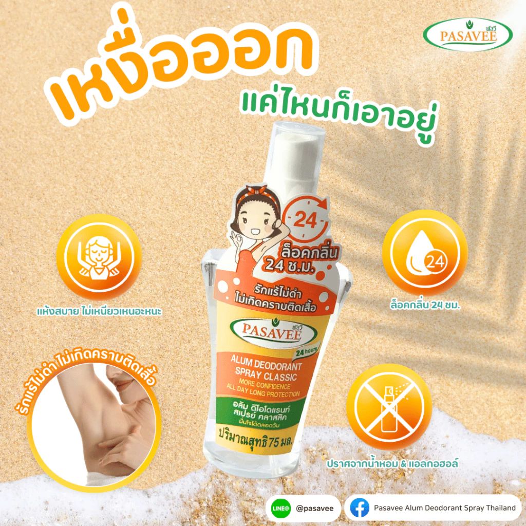 Pasavee Alum Deodorant 🌿 75g แพ็ค 3 ขวด สารส้มธรรมชาติ ระงับกลิ่นกาย 24 ชม.