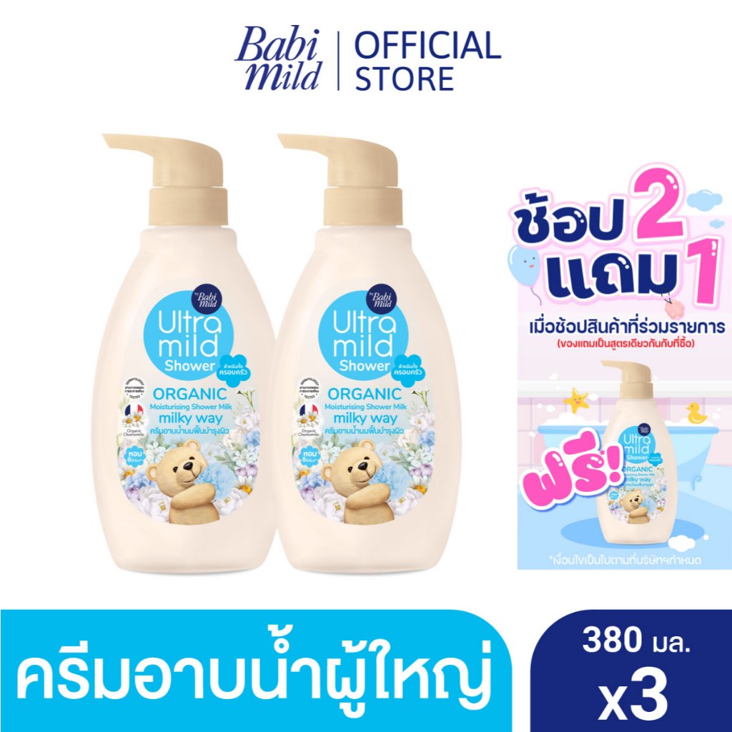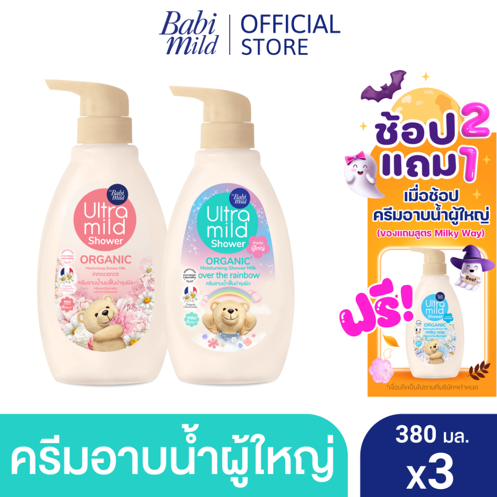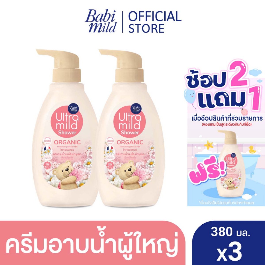 [2แถม1]ครีมอาบน้ำUltra Mild Organic moisturising shower milk 380ml x3 - เลือกสูตรด้านใน