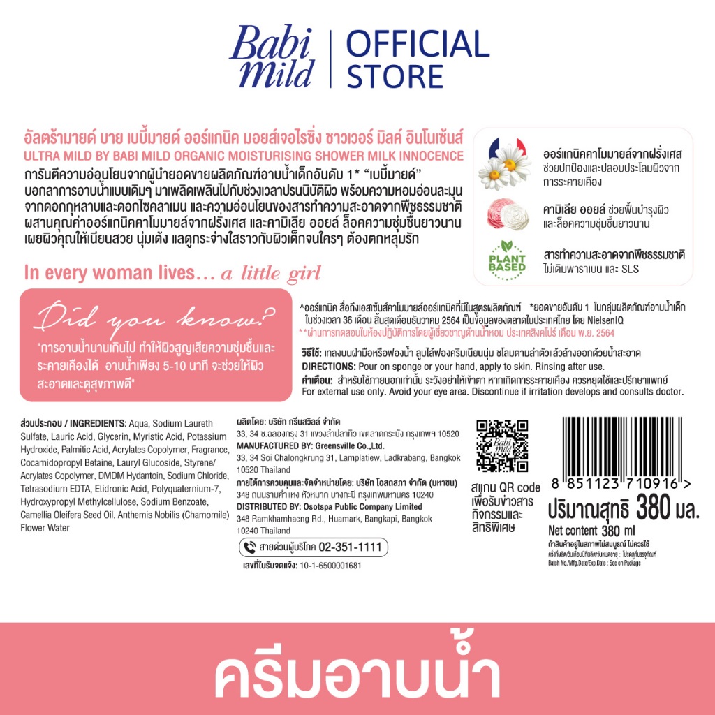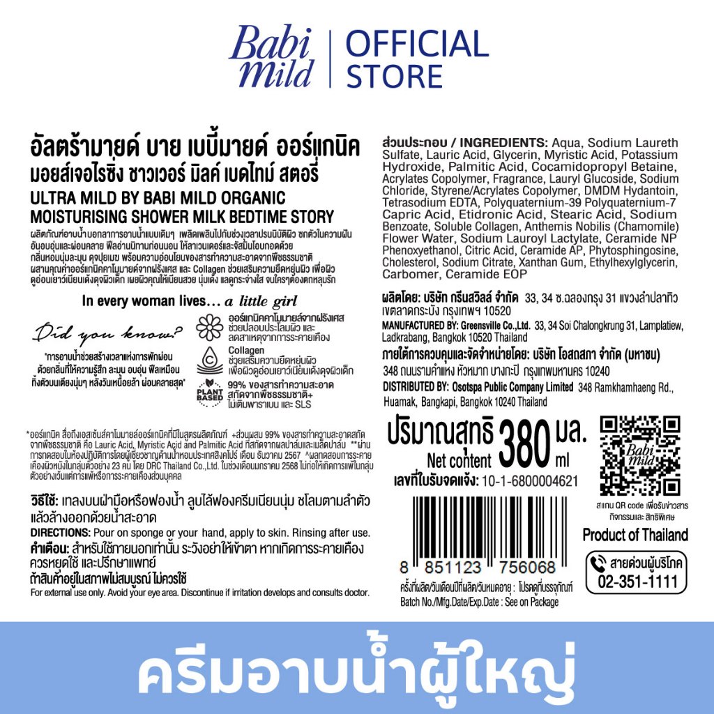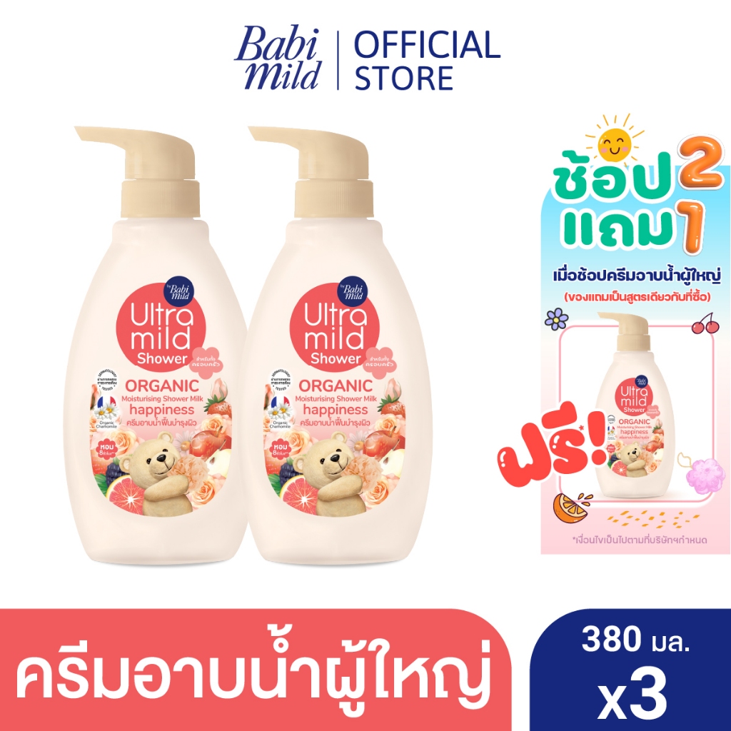 [2แถม1]ครีมอาบน้ำUltra Mild Organic moisturising shower milk 380ml x3 - เลือกสูตรด้านใน