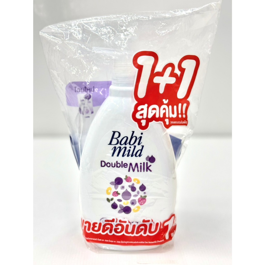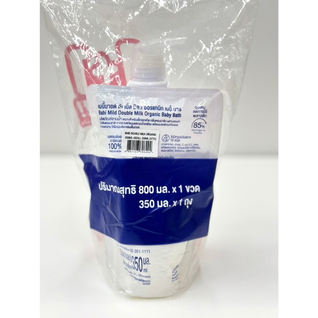 (สุดคุ้ม 1ฟรี1) Babi mild Double Milk Baby bath (800 มล.+ฟรีถุงเติม350 มล.) เบบี้ มายด์ ดับเบิ้ล มิลค์ เบบี้ บาธ