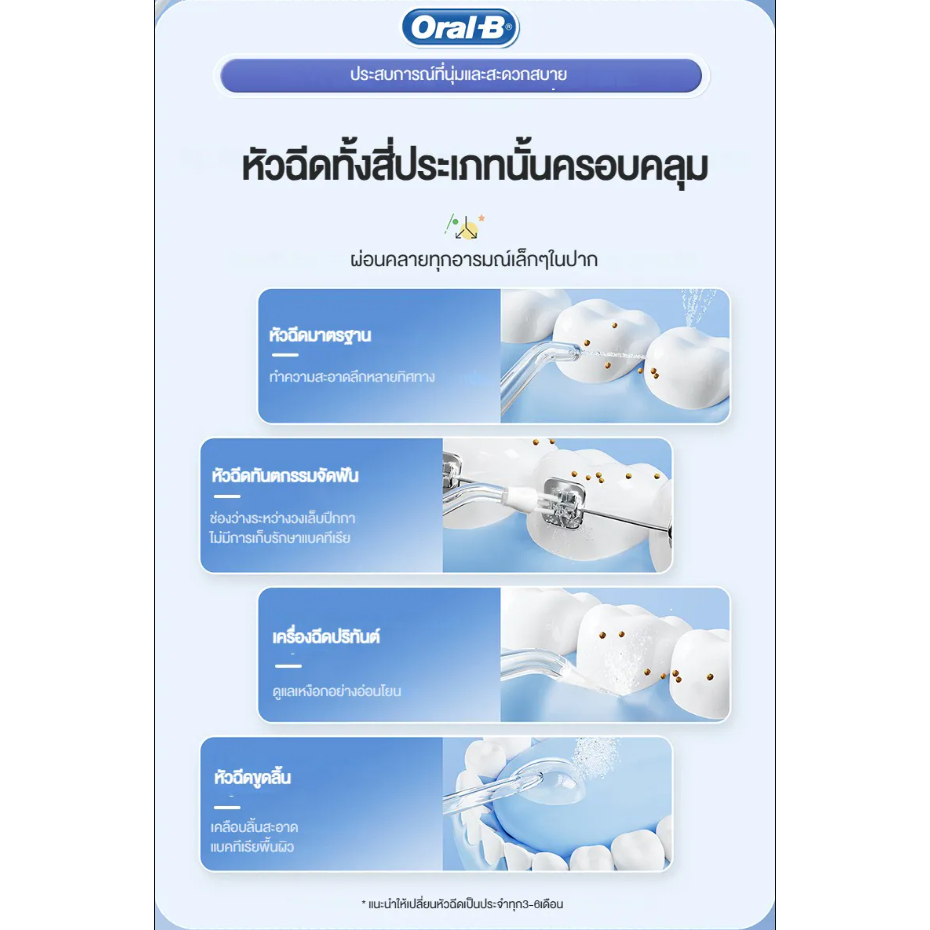 (รับประกัน 3 ปี) Oral-B ไหมขัดฟันพลังน้ำ เครื่องทำความสะอาดฟัน 3 โหมด กันน้ำ IPX7 water flosser ไหมขัดฟัน
