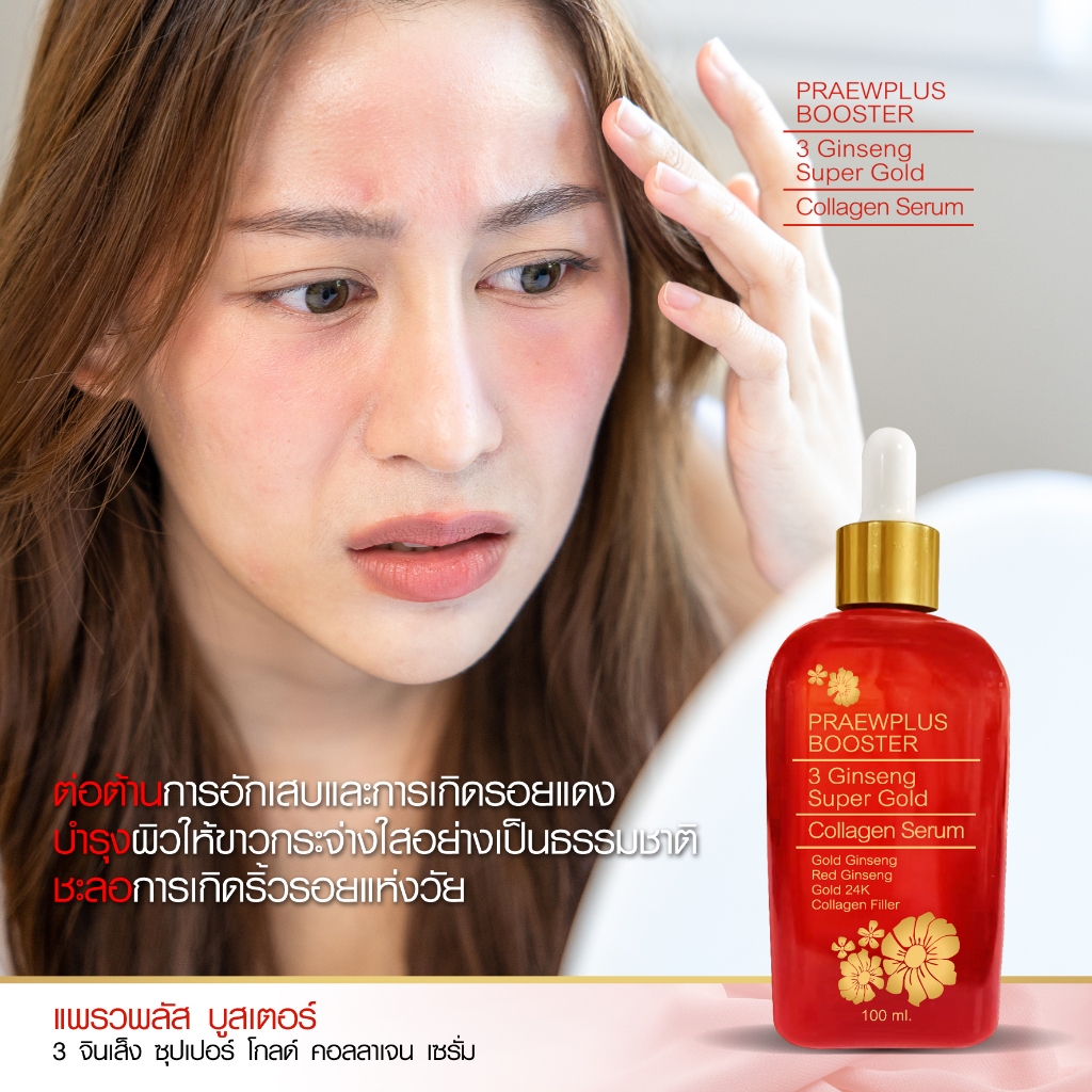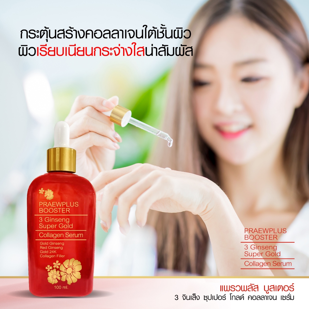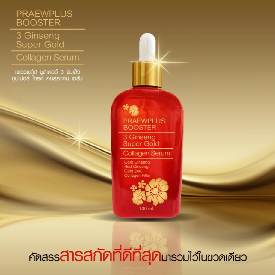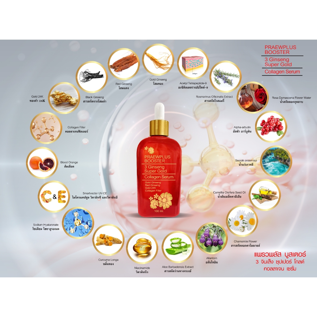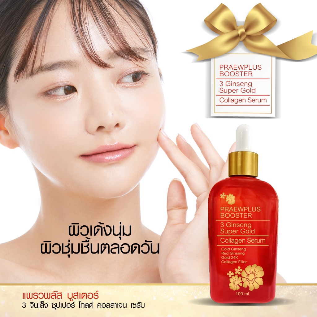 เซรั่มโสม 3 สายพันธุ์ผสมทองคำ 24K ให้ความชุ่มชื้น ลดริ้วรอย Praewplus Booster 100ml