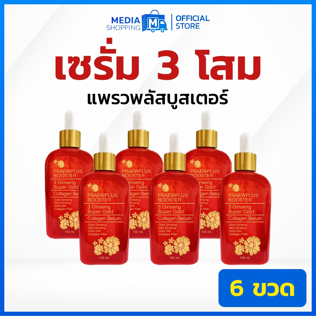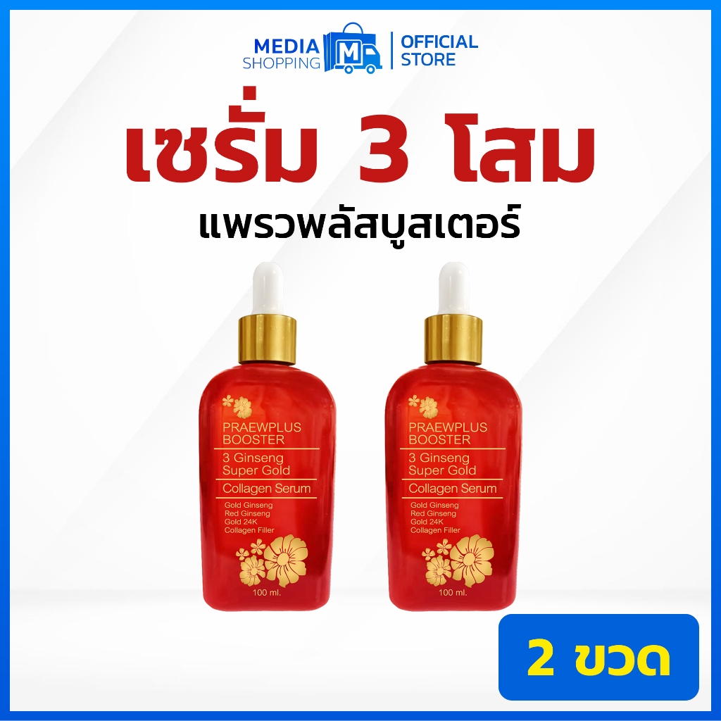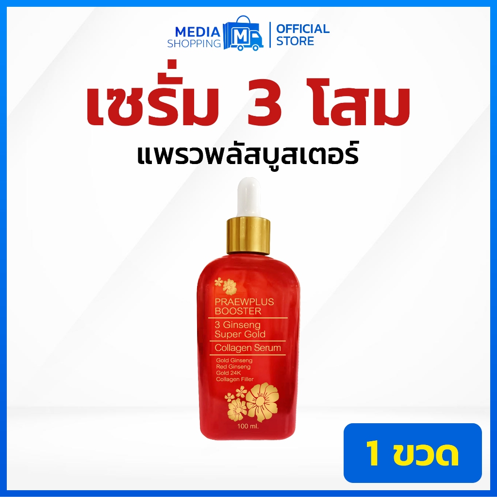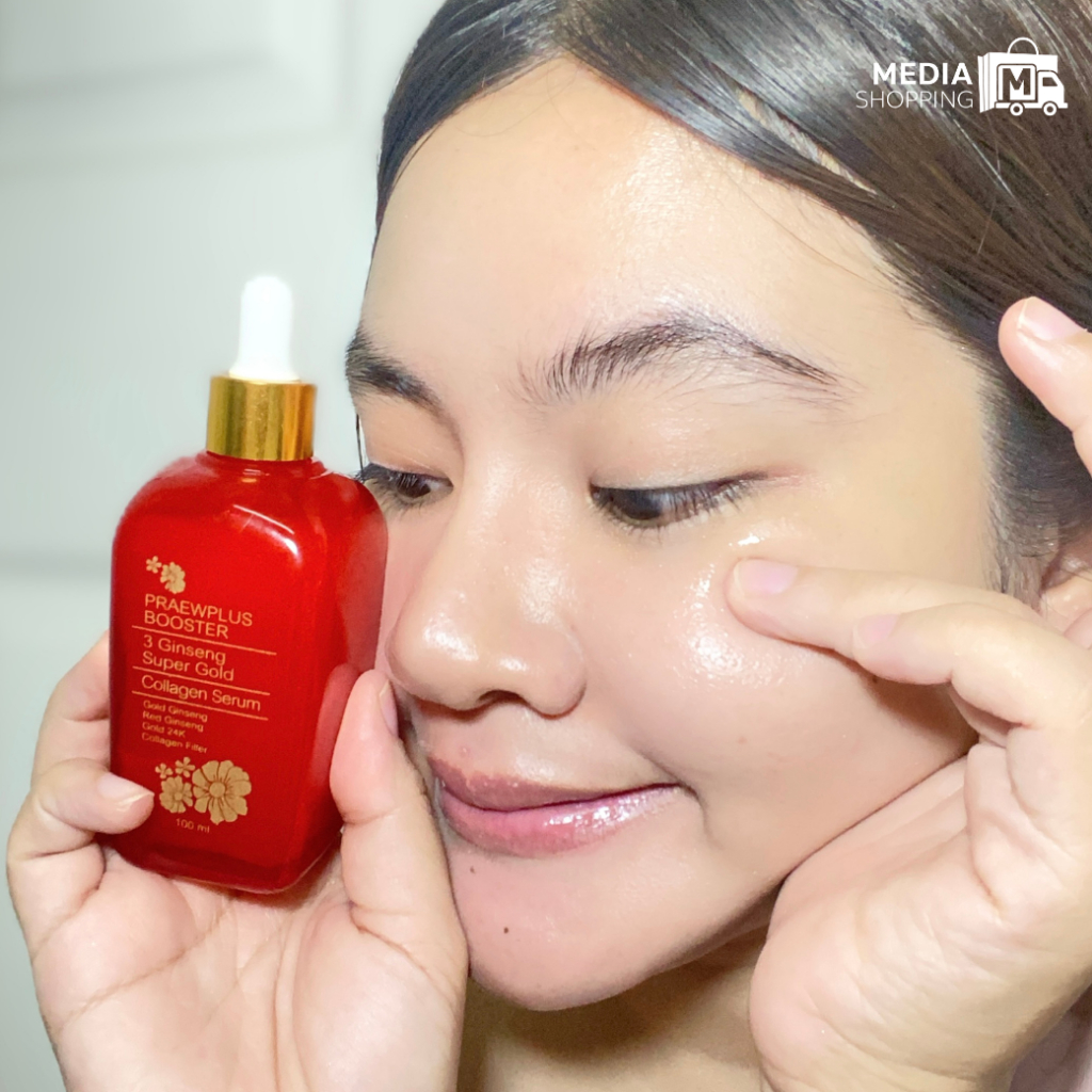 เซรั่มโสม 3 สายพันธุ์ผสมทองคำ 24K ให้ความชุ่มชื้น ลดริ้วรอย Praewplus Booster 100ml