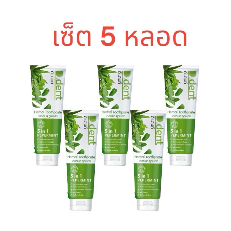 (5 หลอด) D.Dent ยาสีฟัน ดีเดนท์ [100 กรัม] ยาสีฟันดีเด้นท์ ยาสีฟันสมุนไพร