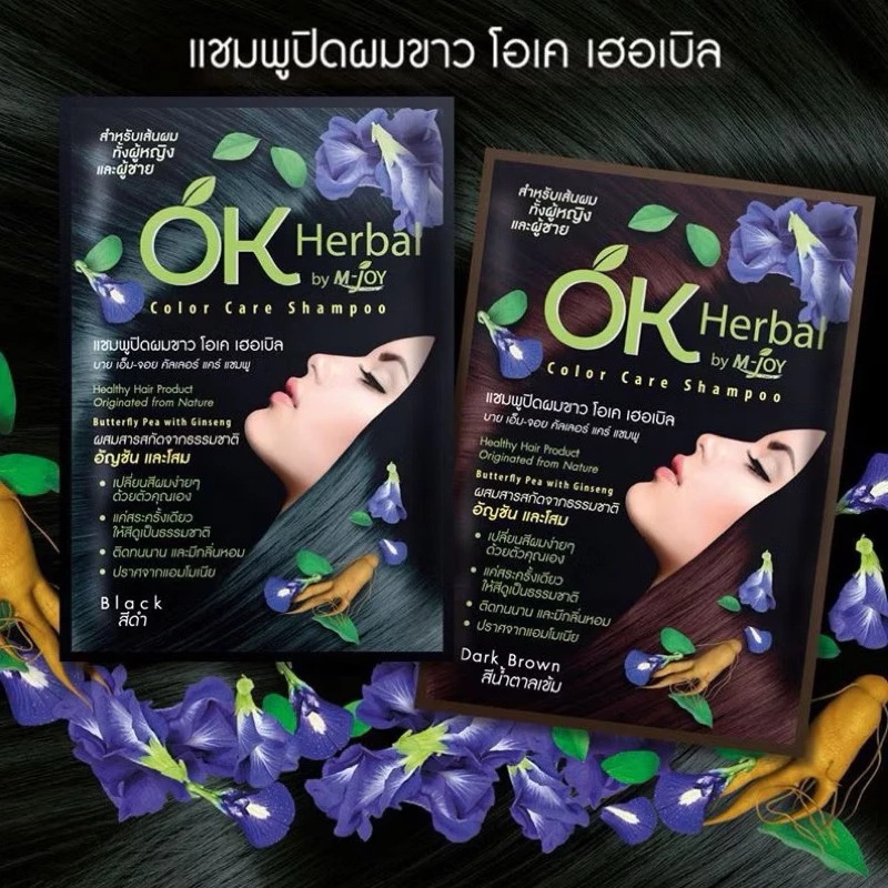 (กล่อง 12 ซอง) OK Herbal (สีน้ำตาลประกายแดง) โอเค เฮอเบิล แชมพู ปิดผมขาว เปลี่ยนสีผม (30 ml.)