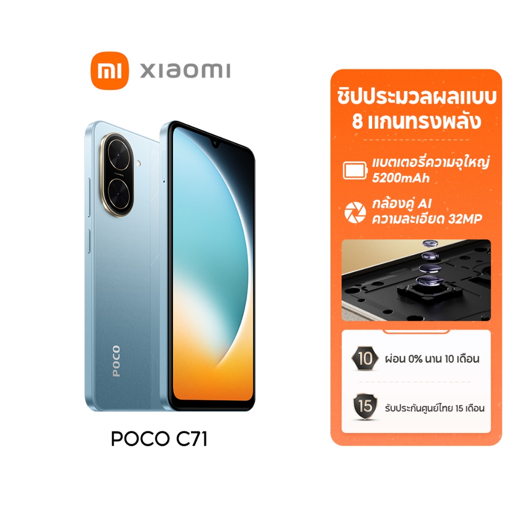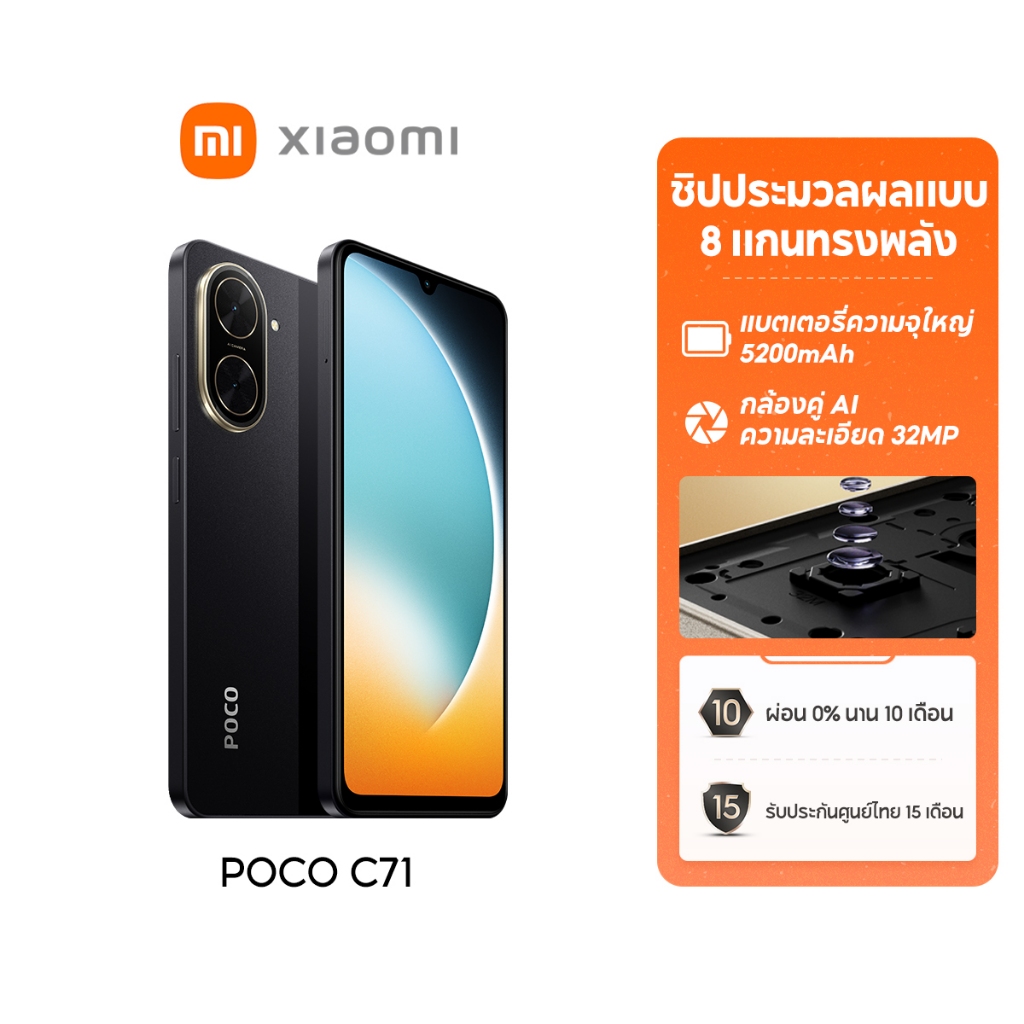 [NEW] Xiaomi POCO C71 โทรศัพท์มือถือ 3+64/4+128 โทรศัพท์ แบตเตอรี่ 5200mAh หน้าจอ 6.88" 120Hz อัตราการรีเฟรช