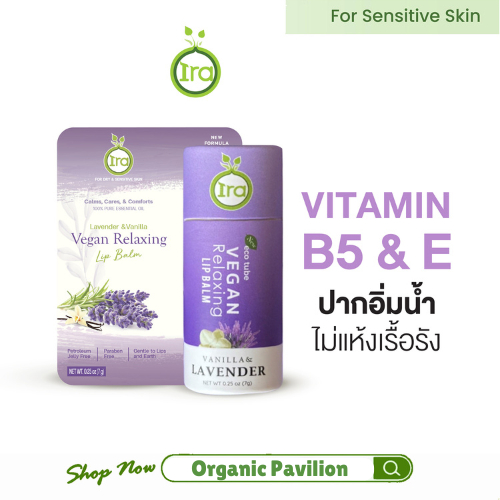 (EXP:07/2026) Ira ลิปบาล์มบำรุง กลิ่น วานิลลา&ลาเวนเดอร์ Vegan Relaxing Lip Balm Vanilla & Lavender (7g)