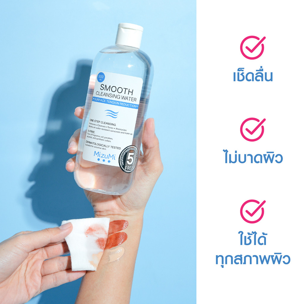 คลีนซิ่งวอเตอร์ 500ml. MizuMi Smooth Cleansing Water สลายเมคอัพ สัมผัสนุ่มลื่น ผิวเป็นสิว แพ้ง่าย