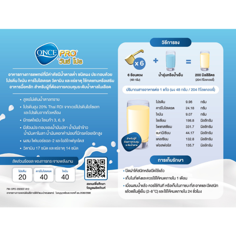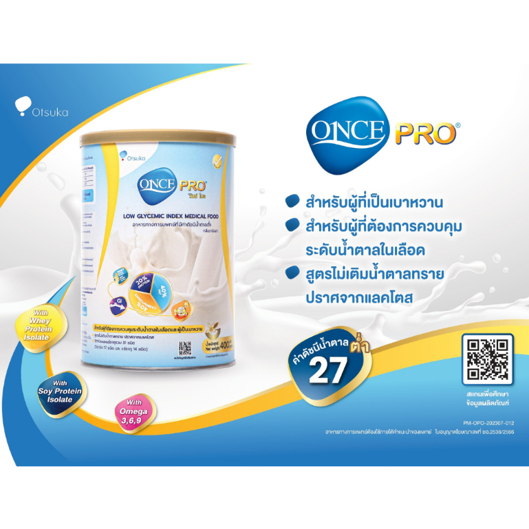Once Pro 400g. วันซ์ โปร นมและอาหารเสริม เพื่อสุขภาพ (มีสติ๊กเกอร์)