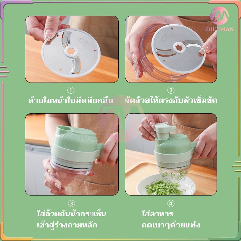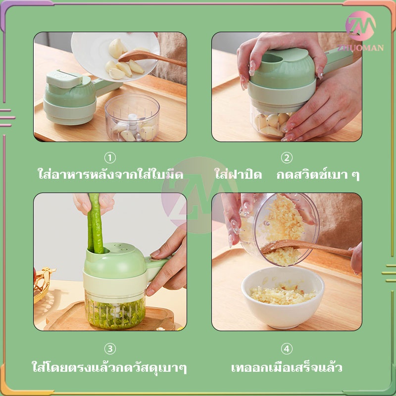 ที่บดกระเทียม 4 In 1 ชาร์จ USB ทนทาน ทำความสะอาดง่าย สะดวกสบายต่อการใช้งาน