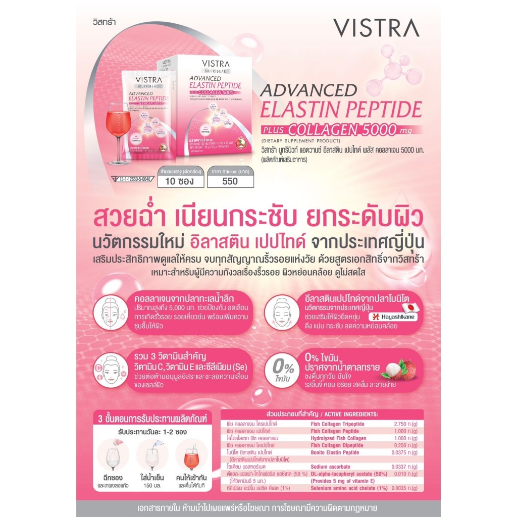 VISTRA NUTRIBEAU ADVANCED ELASTIN PEPTIDE PLUS COLLAGEN 5000 mg ( 10 PC / Box )