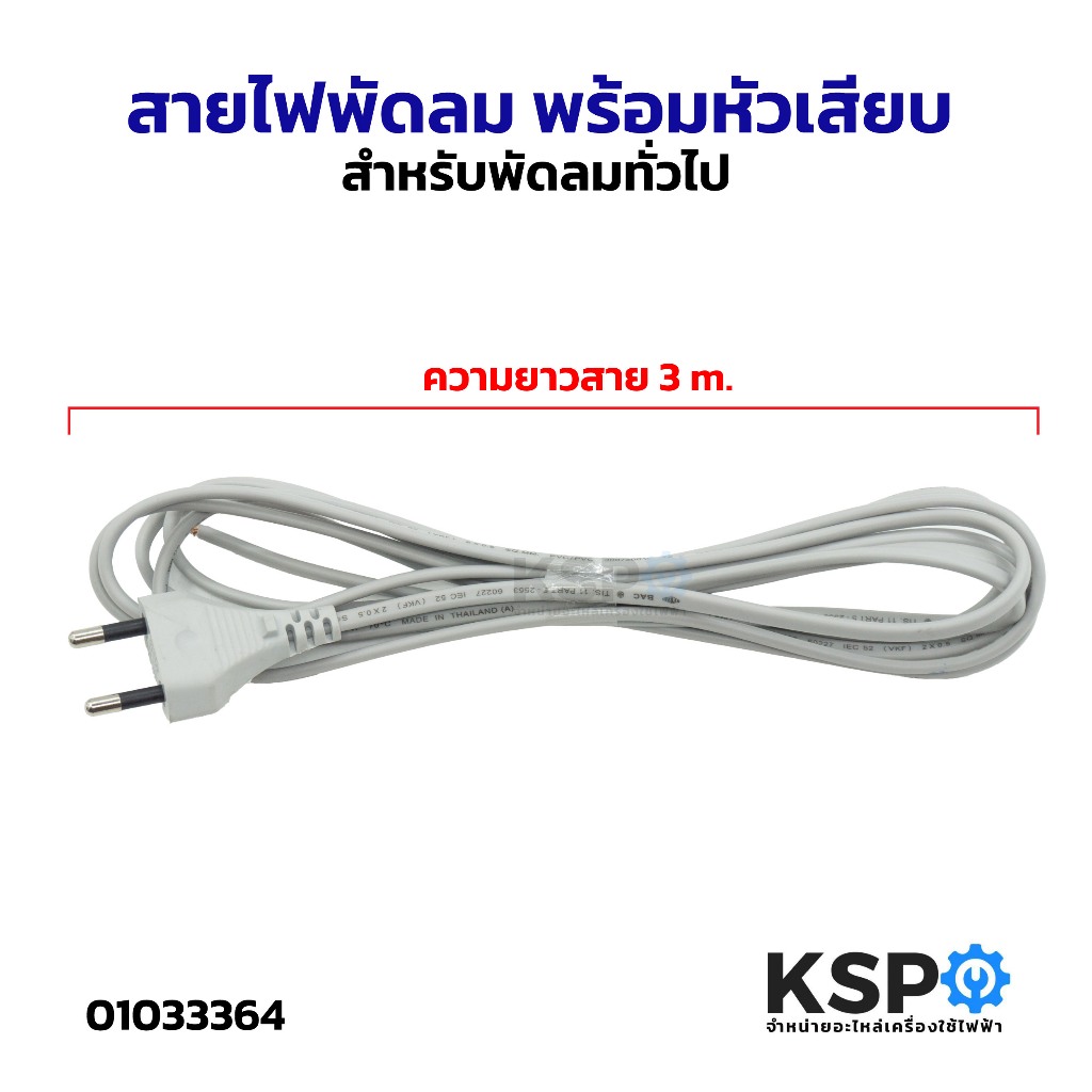 สายไฟพัดลม พร้อมหัวเสียบ VKF2*0.5 SQ.MM. ยาว 3 เมตร สำหรับพัดลมทั่วไป อะไหล่พัดลม