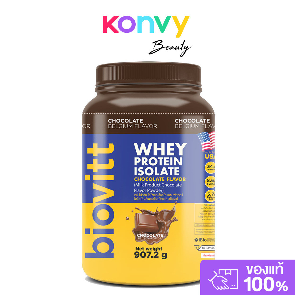 Biovitt Whey Protein Isolate Chocolate Flavor 907.2g ไบโอวิต เวย์โปรตีน ไอโซเลท แบบกระปุก รสช็อคโกแลต.