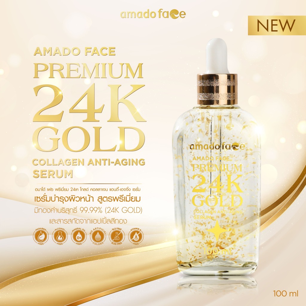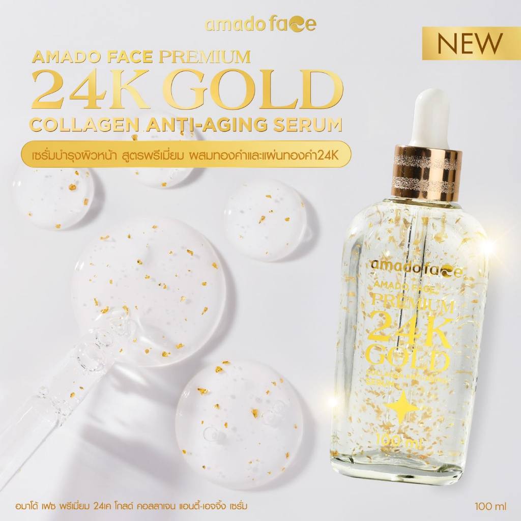 Amado Premium 24K Gold Collagen Anti-Aging Serum อมาโด้ พรีเมี่ยม 24K โกลด์ เซรั่ม [100 ml.] [1 ขวด] ลดริ้วรอย จุดด่างดำ