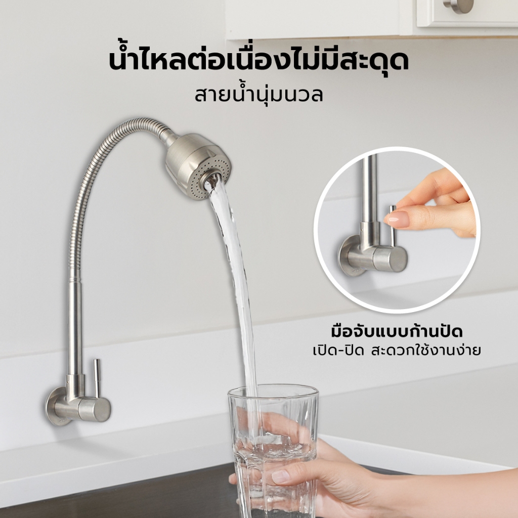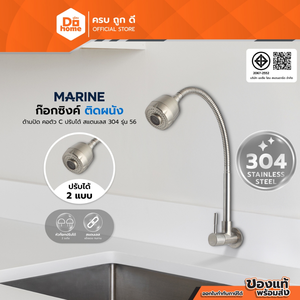 MARINE ก๊อกซิงค์ติดผนัง ด้ามปัด คอตัว C ปรับได้ รุ่น 56 สแตนเลส 304 |EA|