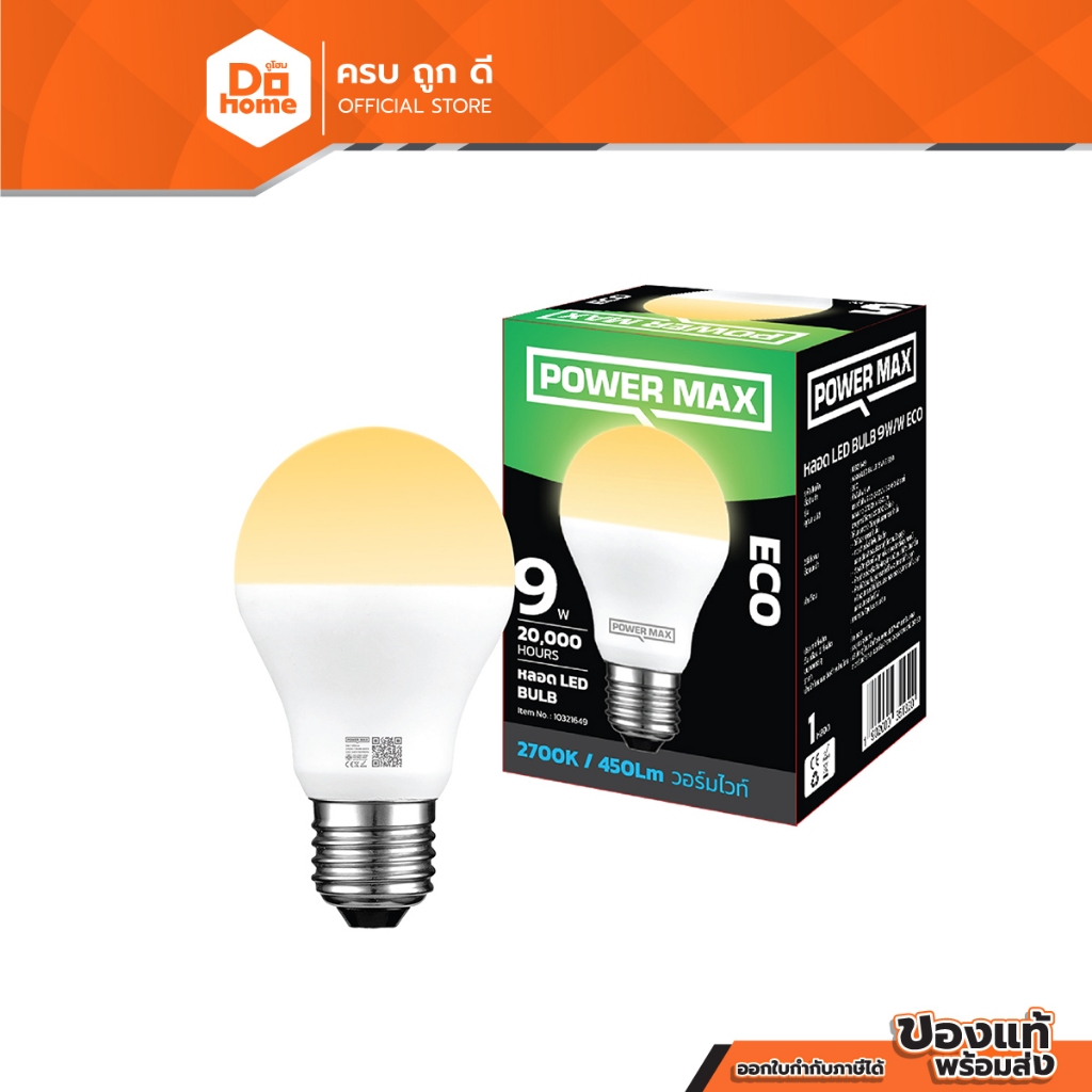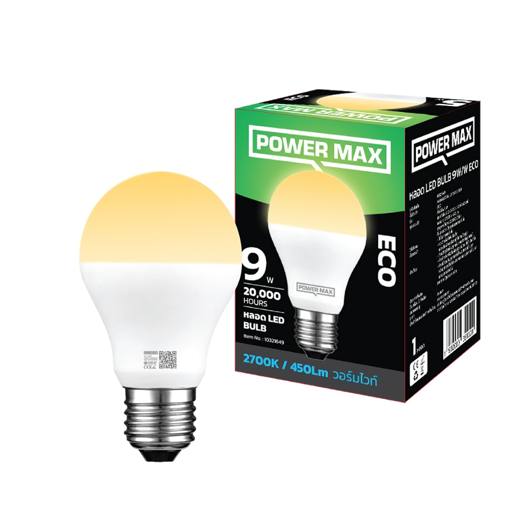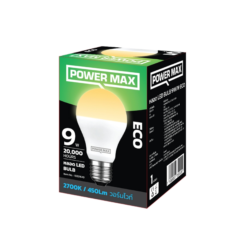 POWER MAX หลอดไฟ LED 9 วัตต์ รุ่น ECO (Warm White) |LOD|