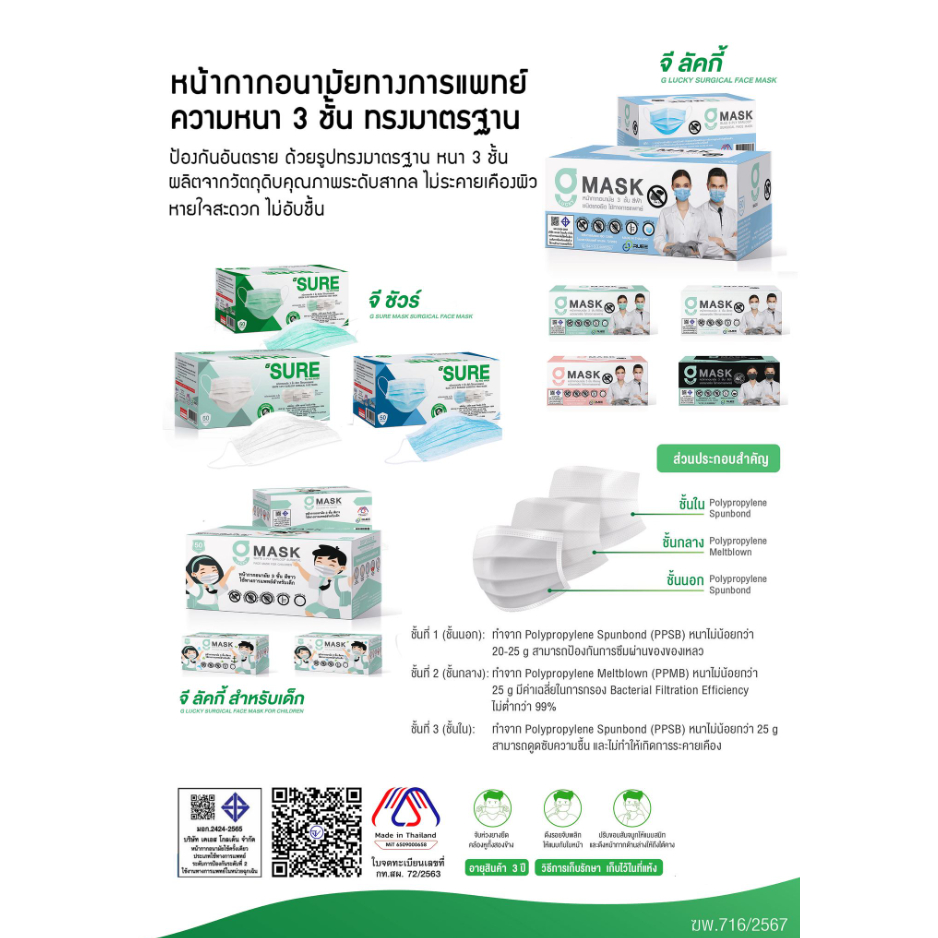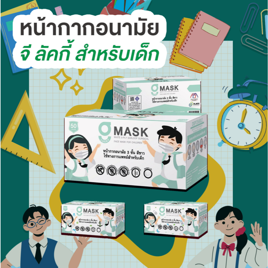 G Lucky Mask หน้ากากอนามัย สำหรับเด็ก สีขาว (ลายทะเล) 50ชิ้น/กล่อง