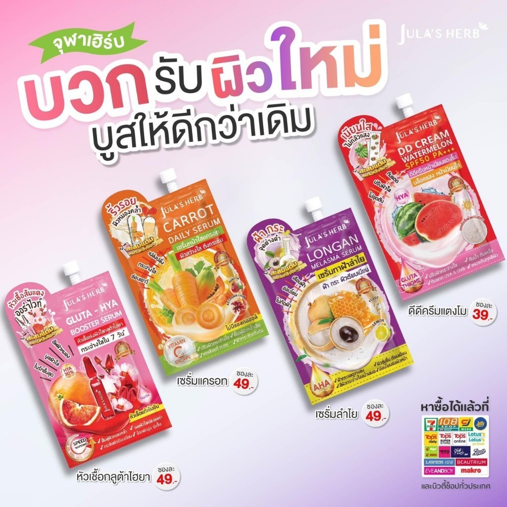 **กล่อง 6 ซอง** DD แตงโม | เซรั่มลำไย | เซรั่มขิงดำ | เซรั่มแครอท | EE คุชชั่น | กลูต้าไฮยา Jula's Herb จุฬาเฮิร์บ ♥️♥️