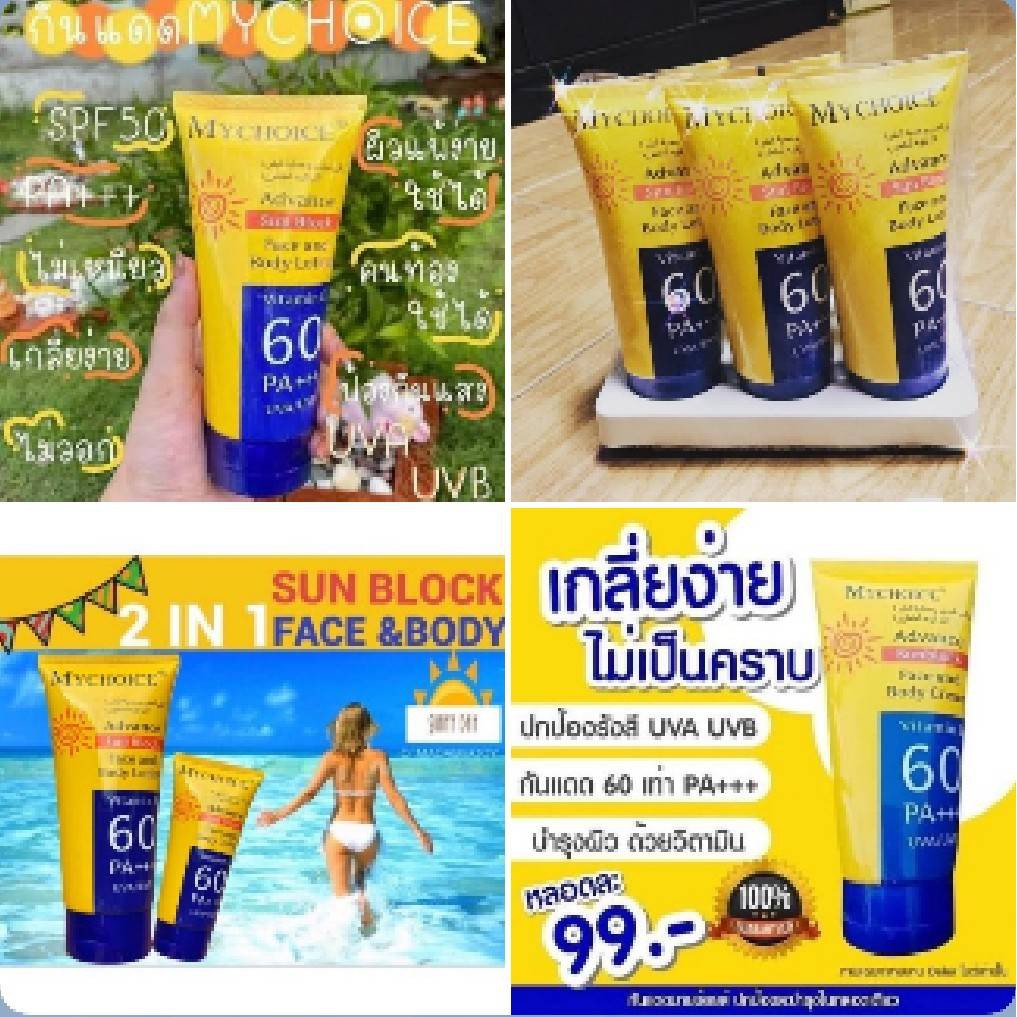 (แท้) My Choice Advance Sun Block 150 g. กันแดดมายชอยส์ กันแดดมายช้อยส์ SPF 60 PA+++ My Choice Sun Block