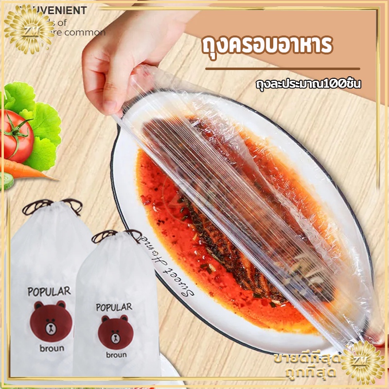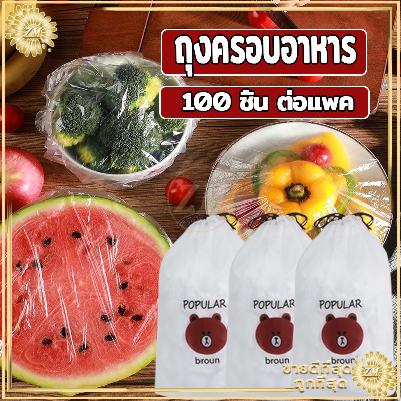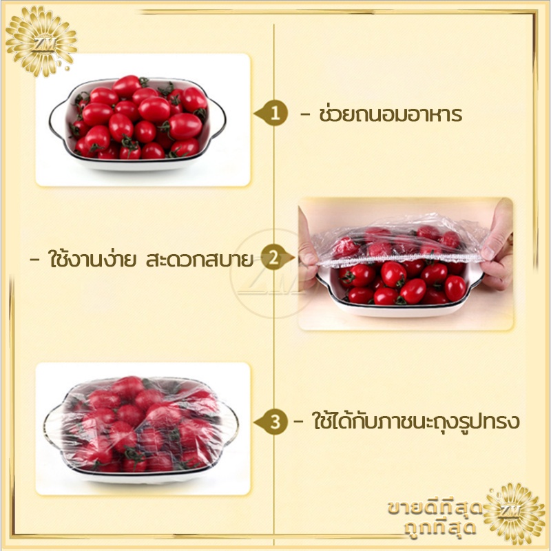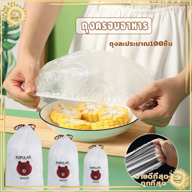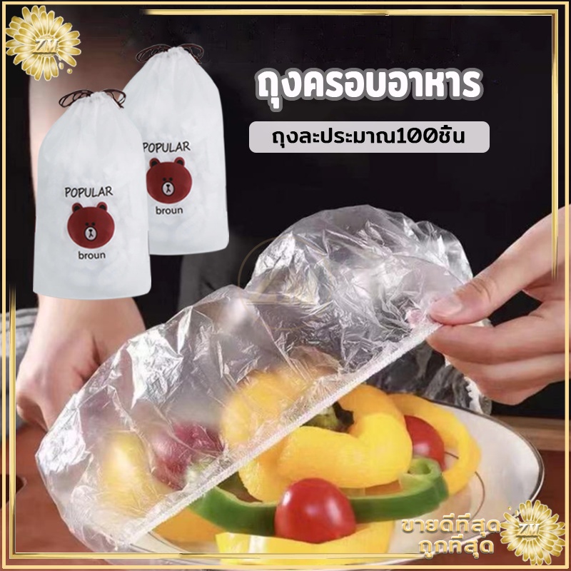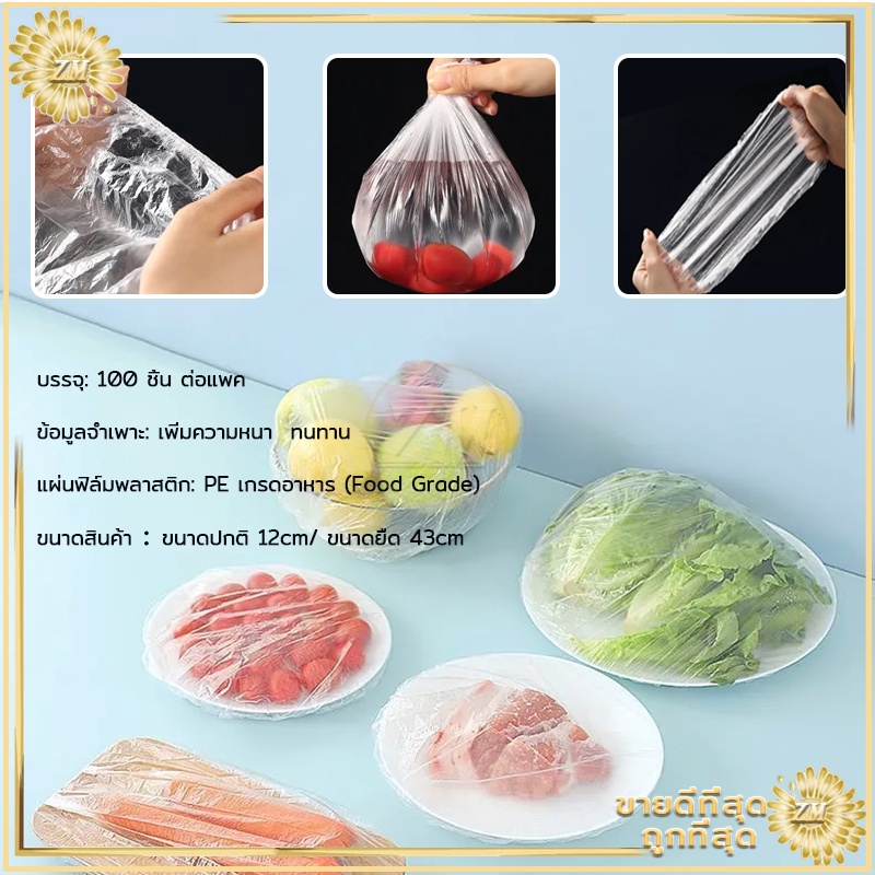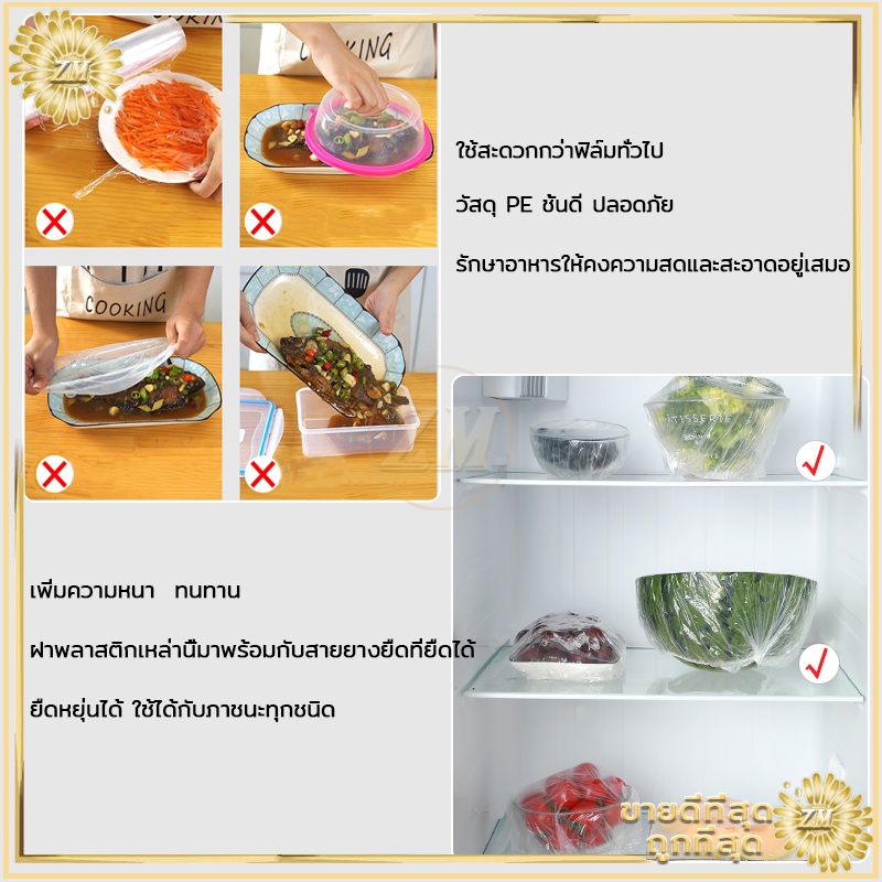 ฟิล์มห่ออาหาร แรปห่ออาหาร ถนอมอาหาร หมวกอาบน้ำ ฟิล์มถนอมอาหาร พลาสติกห่ออาหาร 100 ชิ้น/ถุง กันกลิ่นอาหารในตู้เย็น