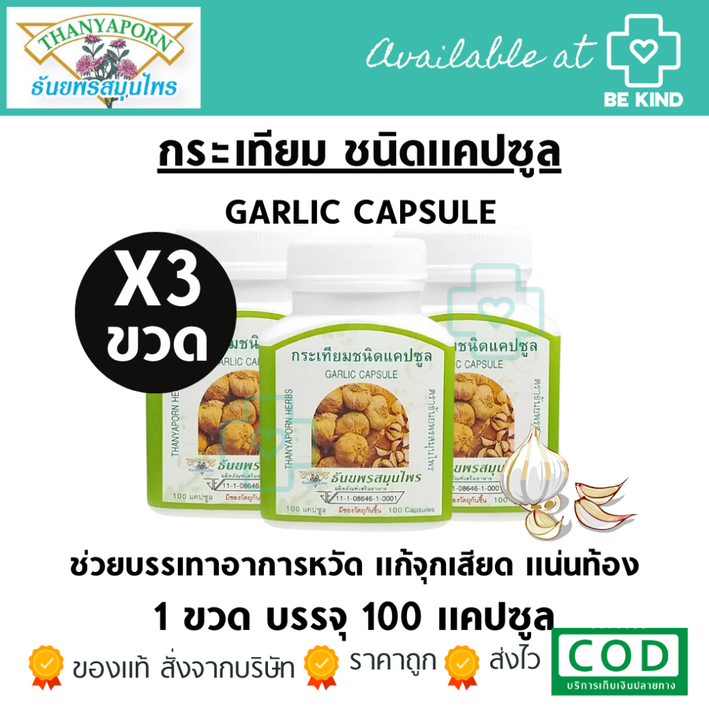 (แพ็ค 3 ) Thanyaporn Herb Garlic Capsules ผลิตภัณฑ์เสริมอาหาร กระเทียมชนิดแคปซูล100 แคปซูล