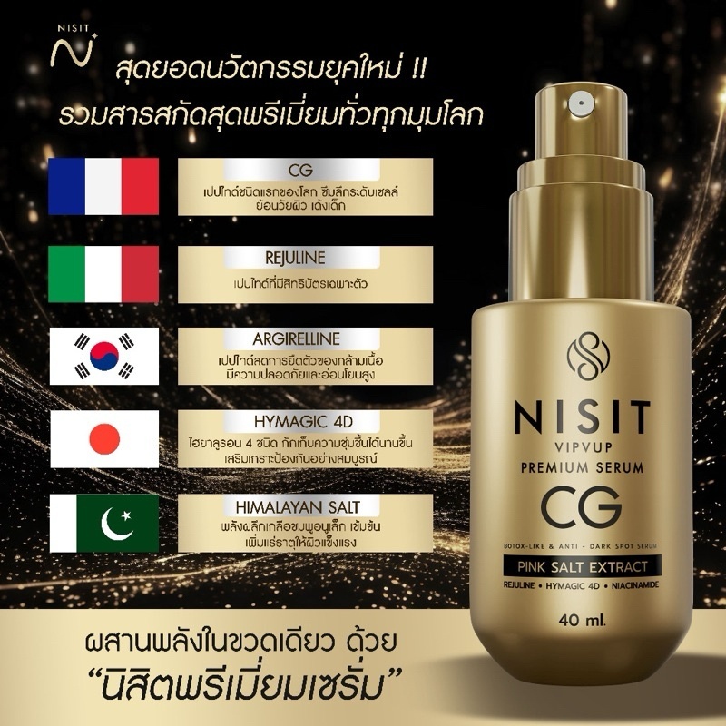 Nisit Premium Serum นิสิต เซรั่มเปปไทด์ ย้อนวัย [40 ml.] [1 ขวด] Nisit CG เซรั่มนิสิตซีจี ผิวกระชับ เต่งตึง แลดูอ่อนวัย