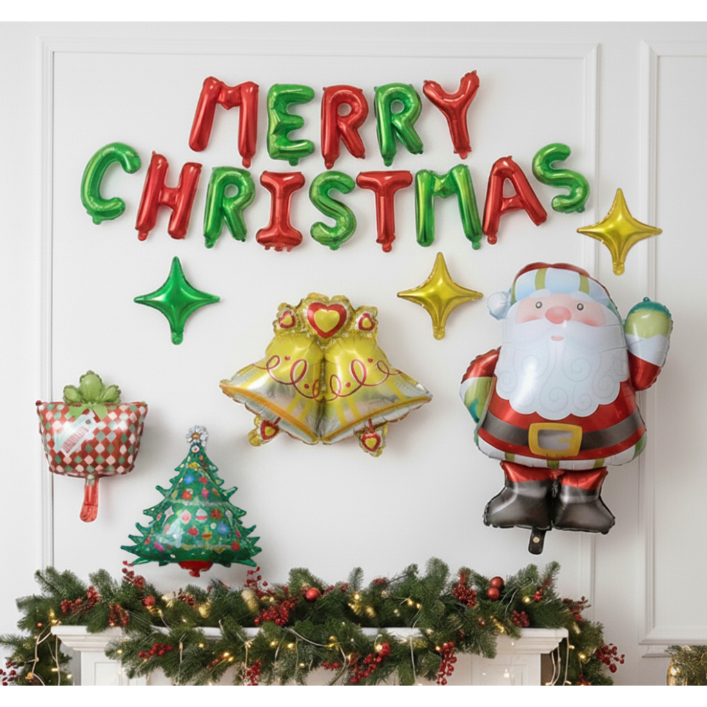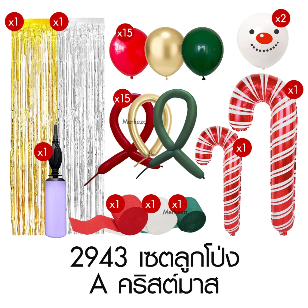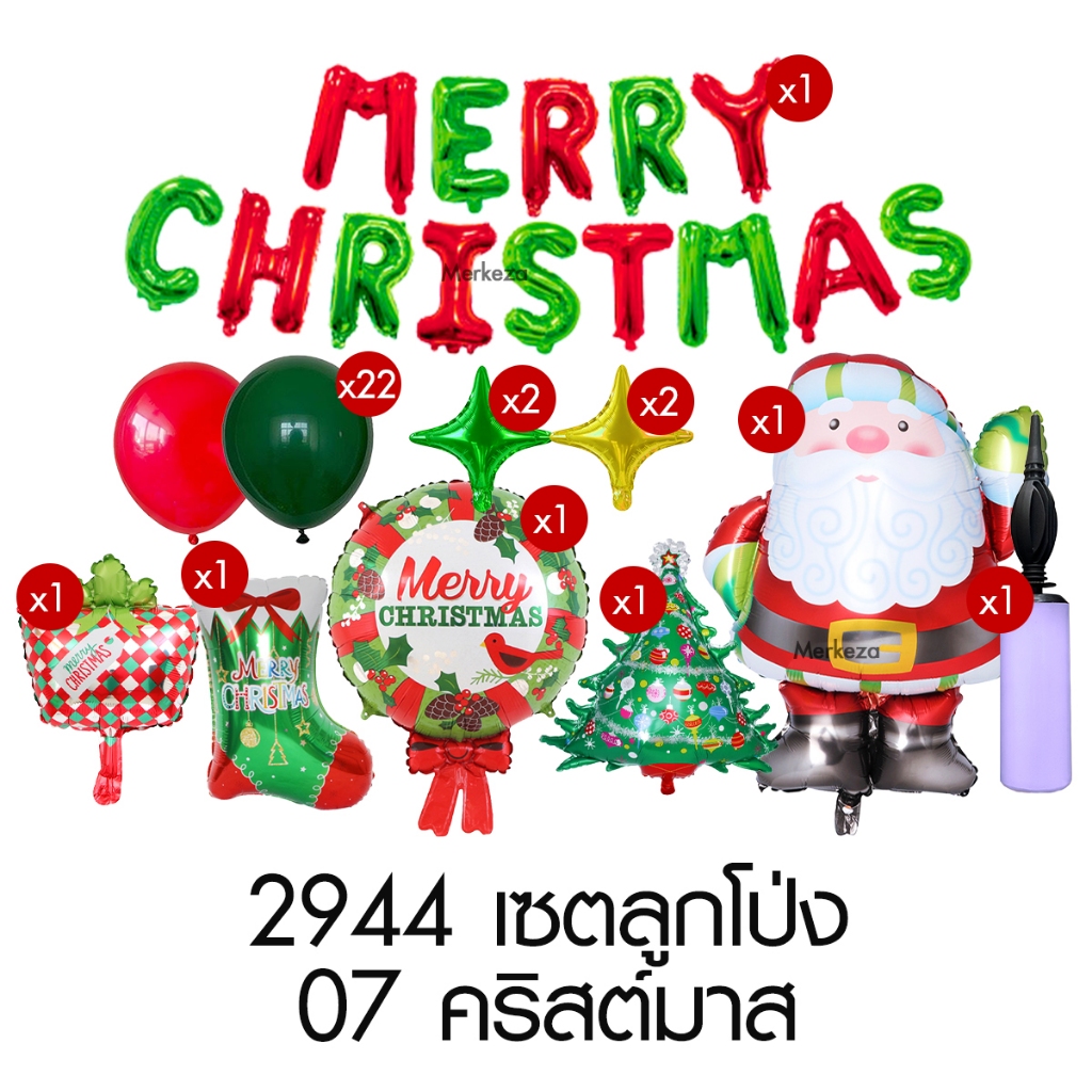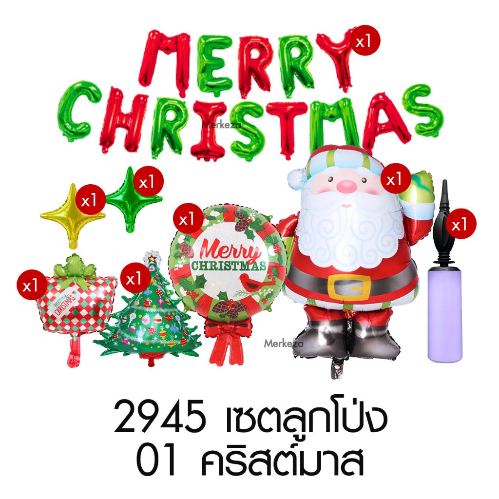 [แถมปั๊มลม] Merkeza Balloon Christmas เซตลูกโป่ง ลูกโป่ง ฟอยล์ ตกแต่ง งานปาร์ตี้ คริสต์มาส ปีใหม่ ซานต้า