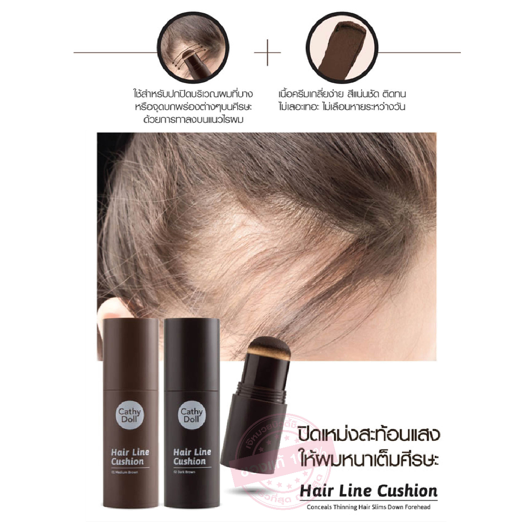 [ปิดเหม่ง] Cathy Doll Hair Line Cushion เคที่ดอลล์ แฮร์ไลน์คูชชั่น ปิดผมบาง ปิดผมขาวชั่วคราว เติมร่องหน้าผากเถิก [2 g]